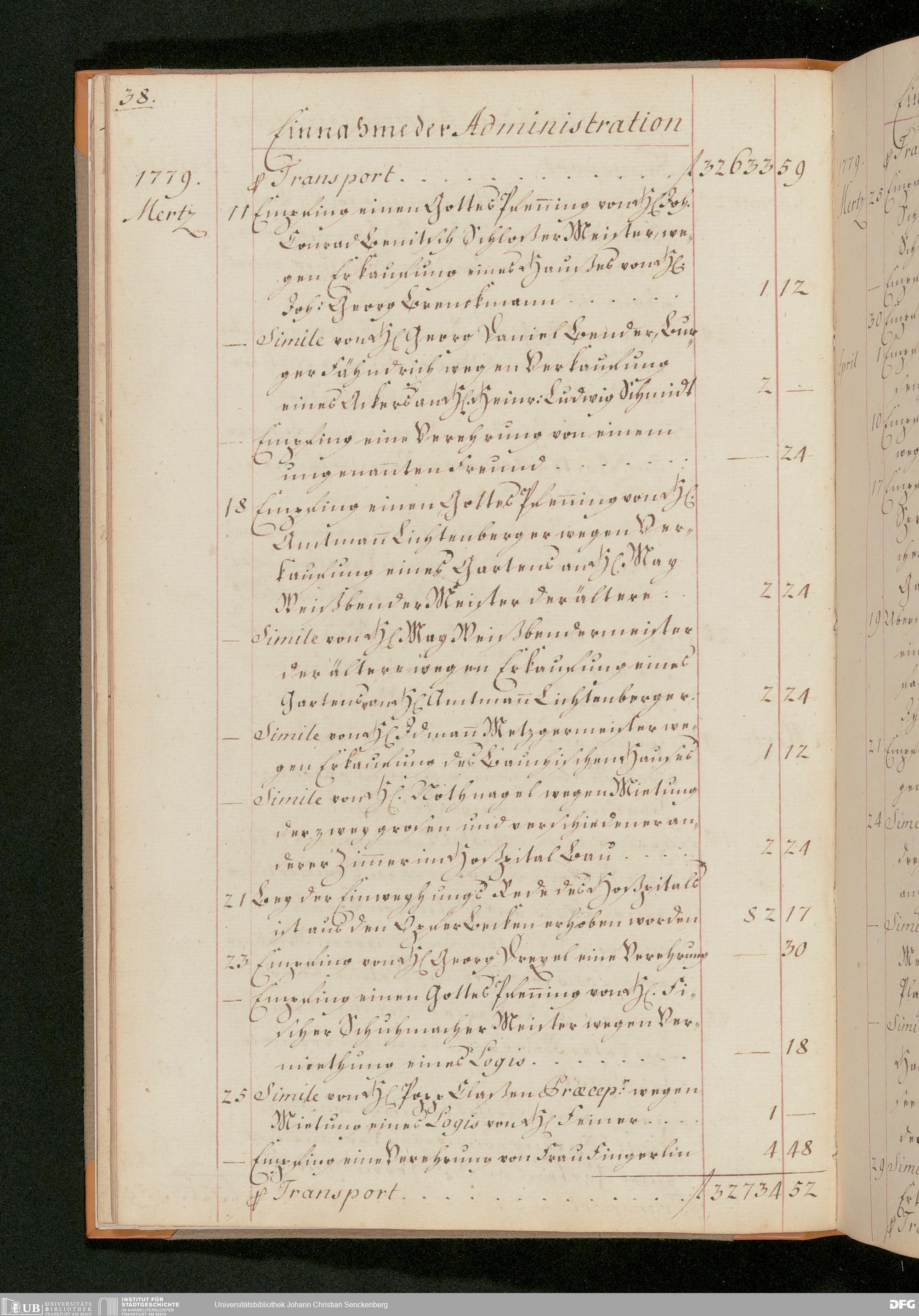 V48 Dr. Senckenbergische Stiftung, 51 - "Einnahm-Buch von Legaten, Gottes-Pfeninge und Verehrungen zum Senckenbergischen Stifft und Burger Hospithal"