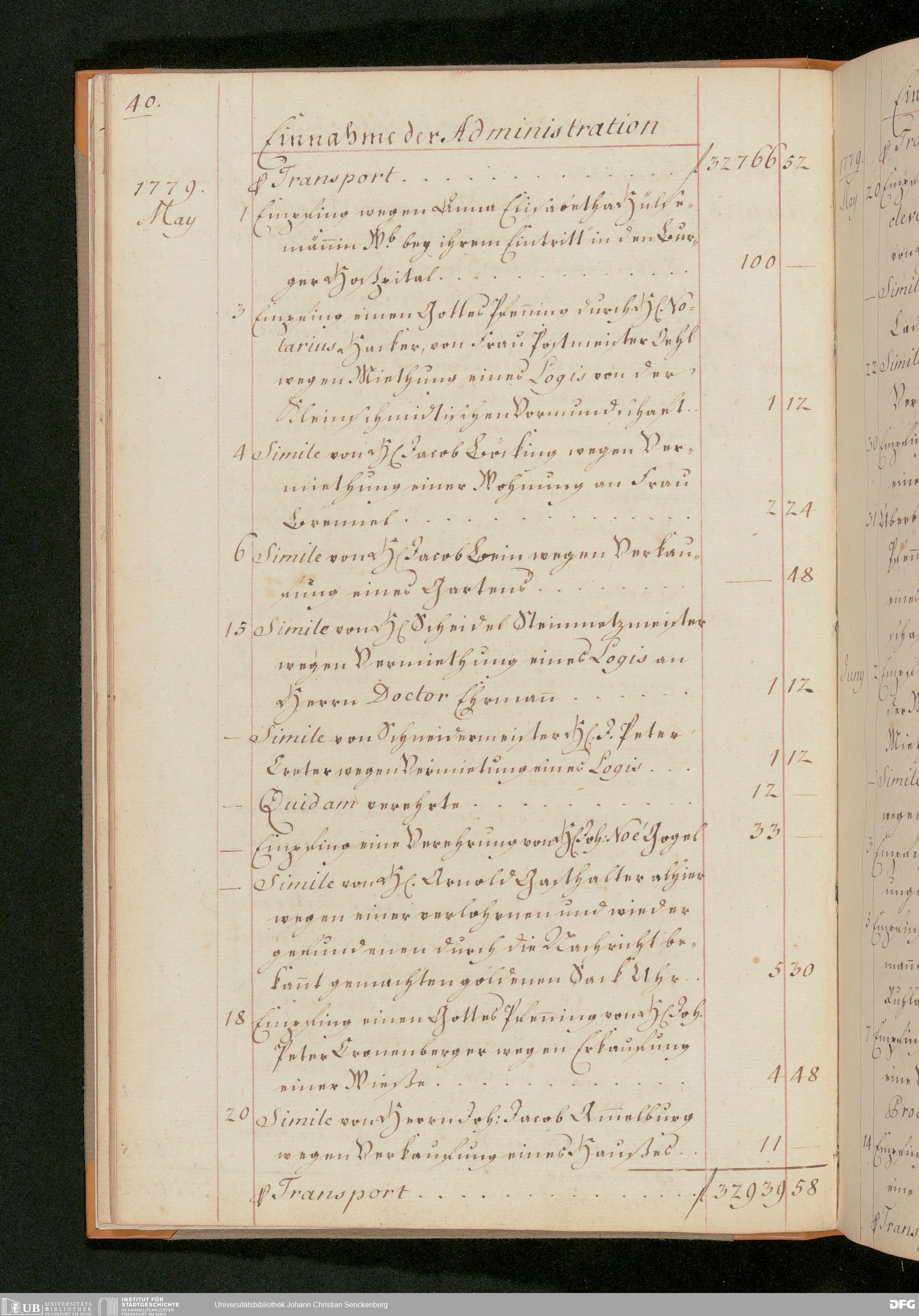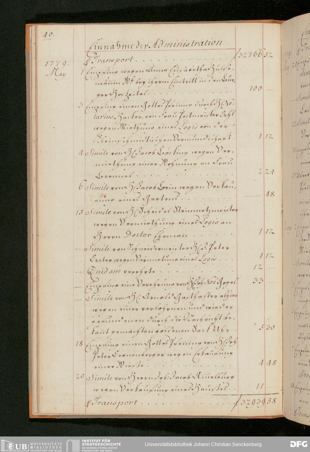 V48 Dr. Senckenbergische Stiftung, 51 - "Einnahm-Buch von Legaten, Gottes-Pfeninge und Verehrungen zum Senckenbergischen Stifft und Burger Hospithal"
