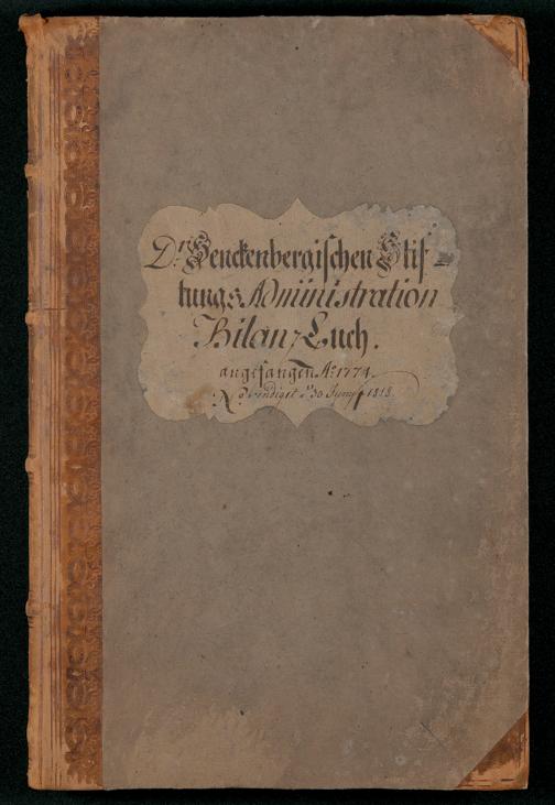 V48 Dr. Senckenbergische Stiftung, 62 - "Dr. Senckenbergischen Stiftungs Administration Bilanz Buch angefangen Ao. 1774 beendigt d(en) 30. Juny 1818"