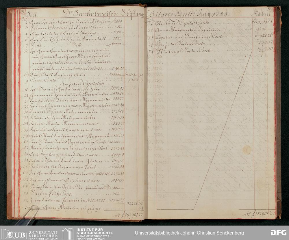 V48 Dr. Senckenbergische Stiftung, 62 - "Dr. Senckenbergischen Stiftungs Administration Bilanz Buch angefangen Ao. 1774 beendigt d(en) 30. Juny 1818"
