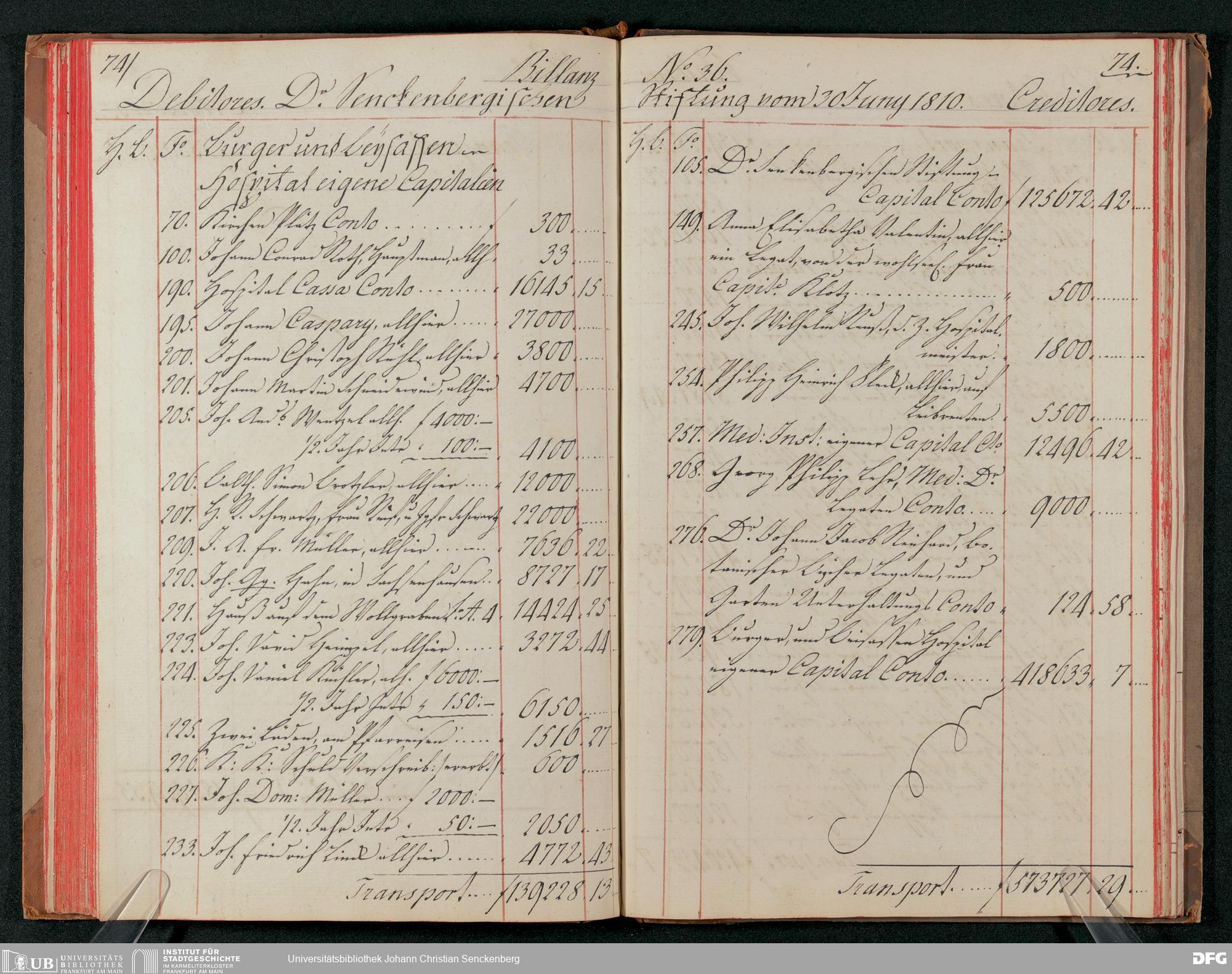 V48 Dr. Senckenbergische Stiftung, 62 - "Dr. Senckenbergischen Stiftungs Administration Bilanz Buch angefangen Ao. 1774 beendigt d(en) 30. Juny 1818"