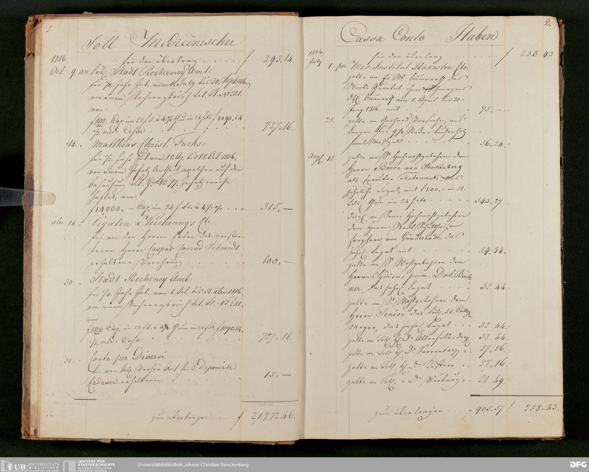 V48 Dr. Senckenbergische Stiftung, 63 - ... Kassenbrouillon des Dr. Senckenbergischen Medizinischen Instituts, Bd. 2