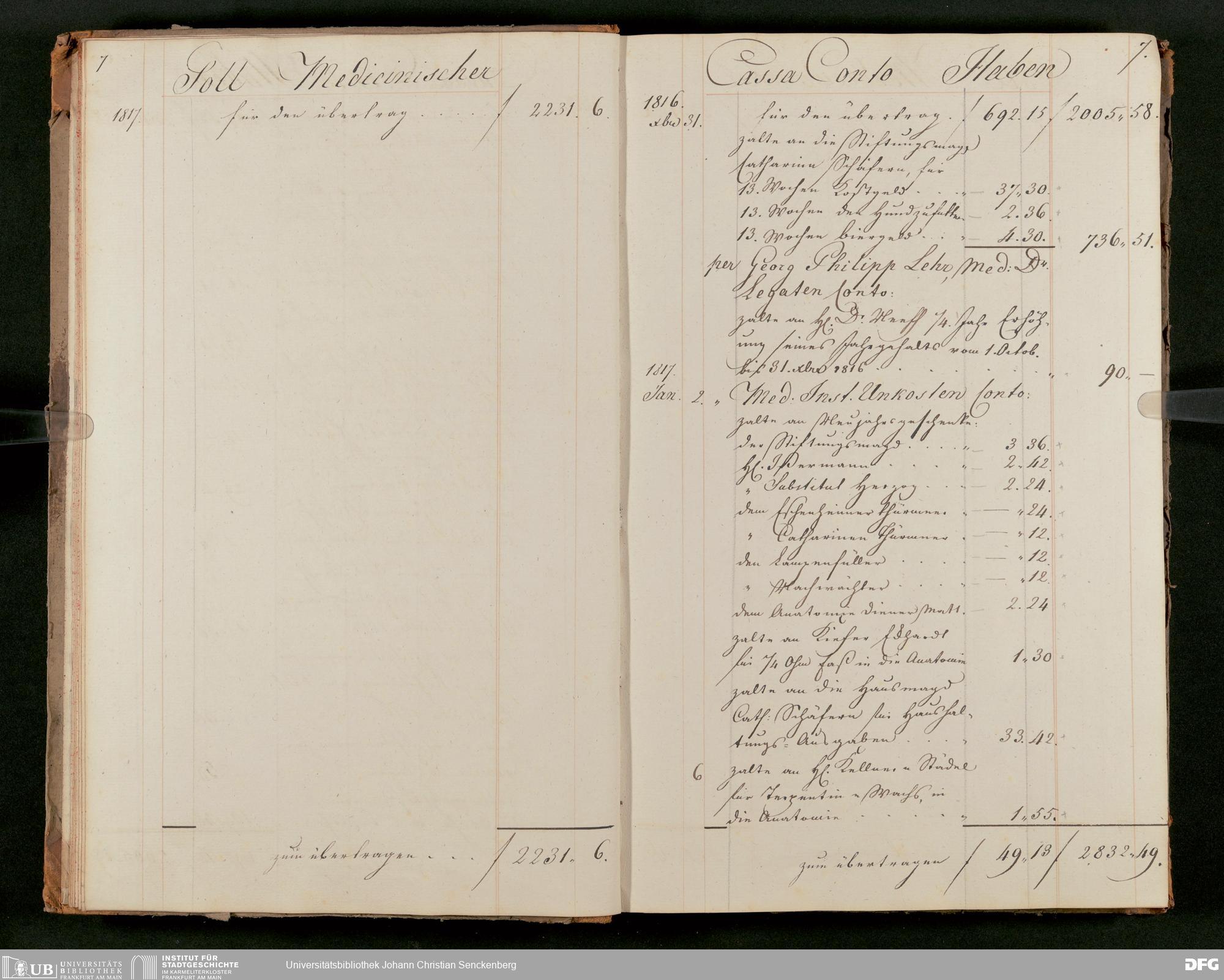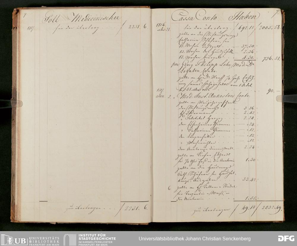 V48 Dr. Senckenbergische Stiftung, 63 - ... Kassenbrouillon des Dr. Senckenbergischen Medizinischen Instituts, Bd. 2