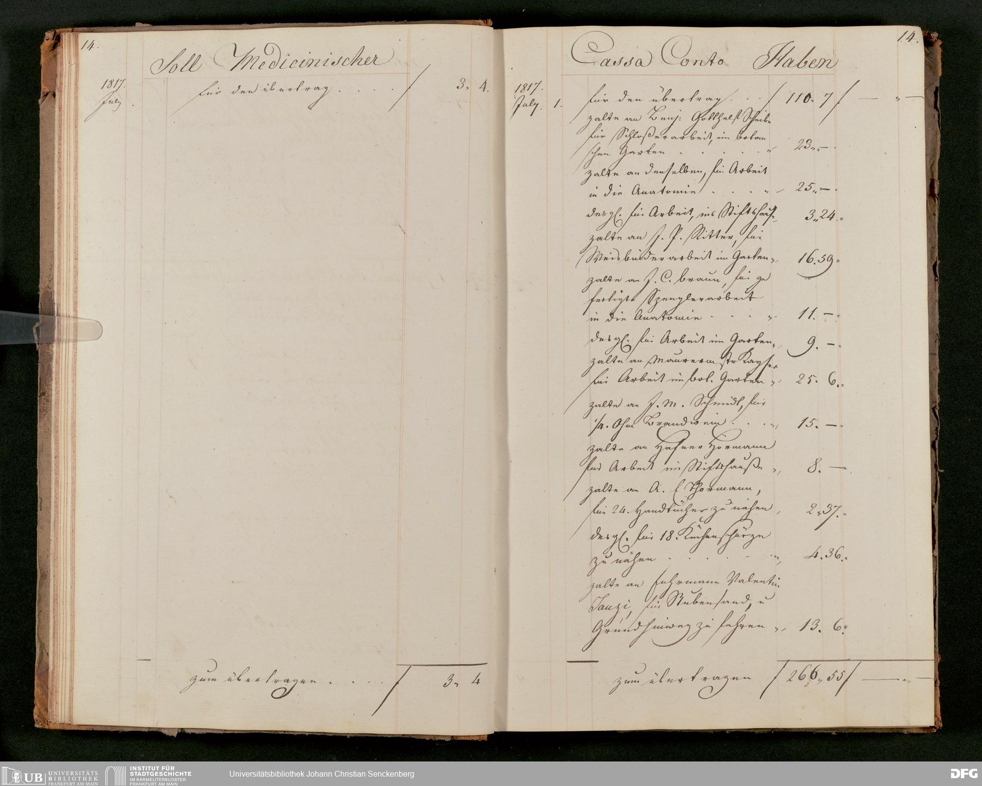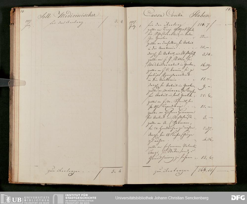 V48 Dr. Senckenbergische Stiftung, 63 - ... Kassenbrouillon des Dr. Senckenbergischen Medizinischen Instituts, Bd. 2