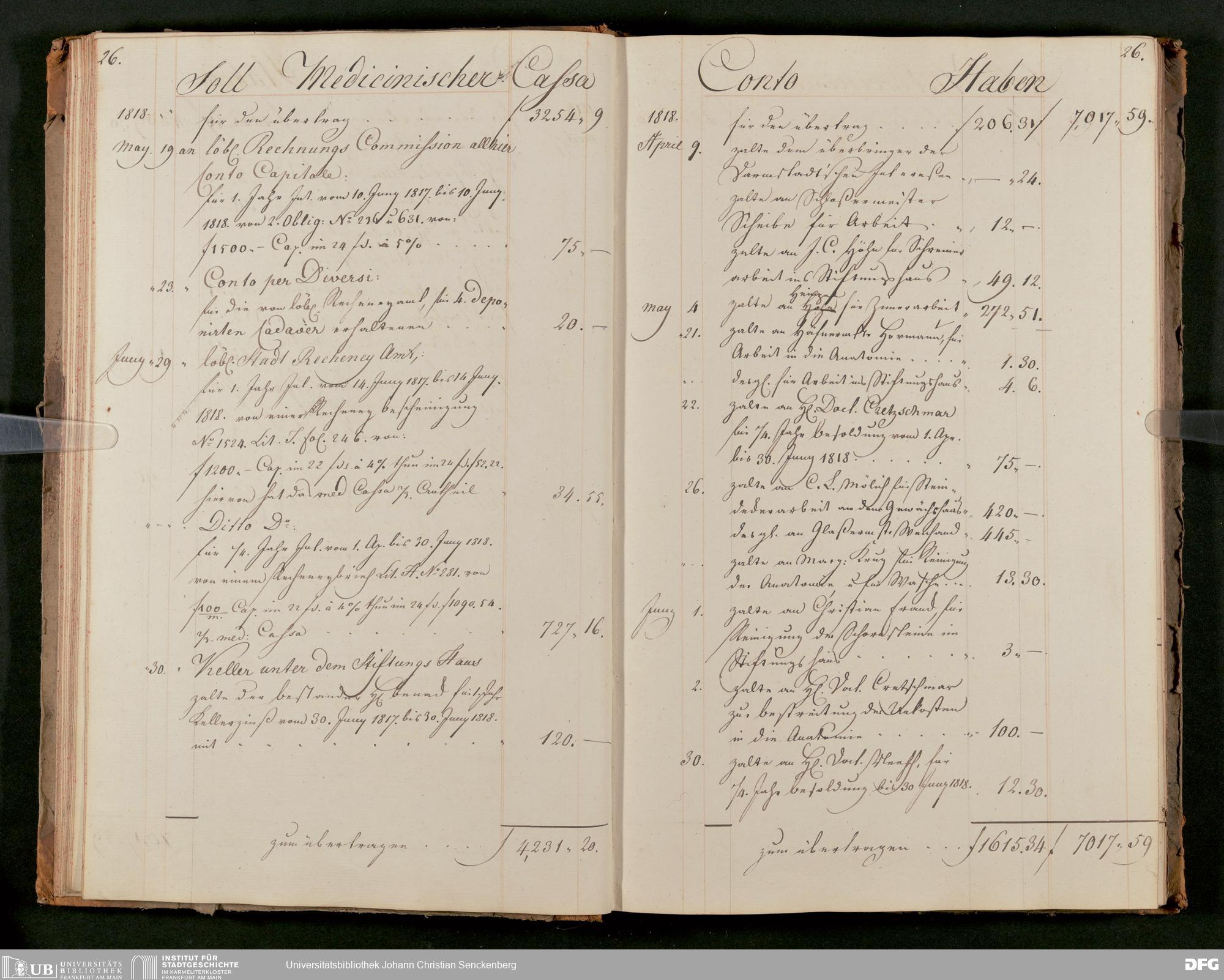 V48 Dr. Senckenbergische Stiftung, 63 - ... Kassenbrouillon des Dr. Senckenbergischen Medizinischen Instituts, Bd. 2