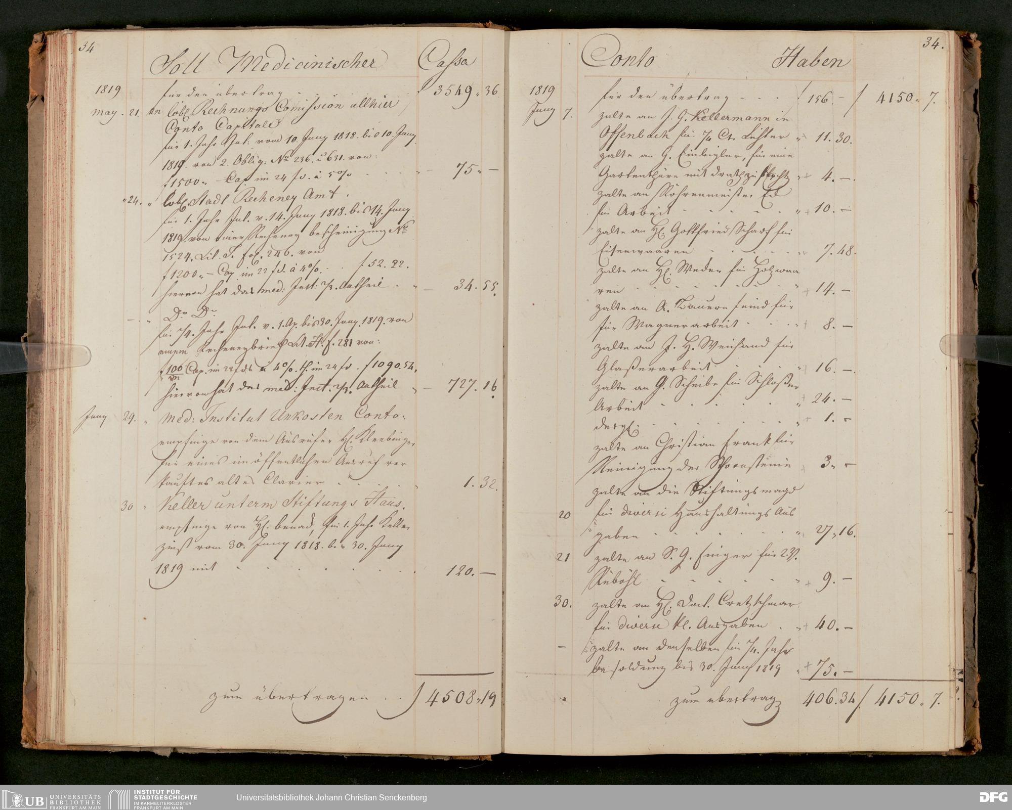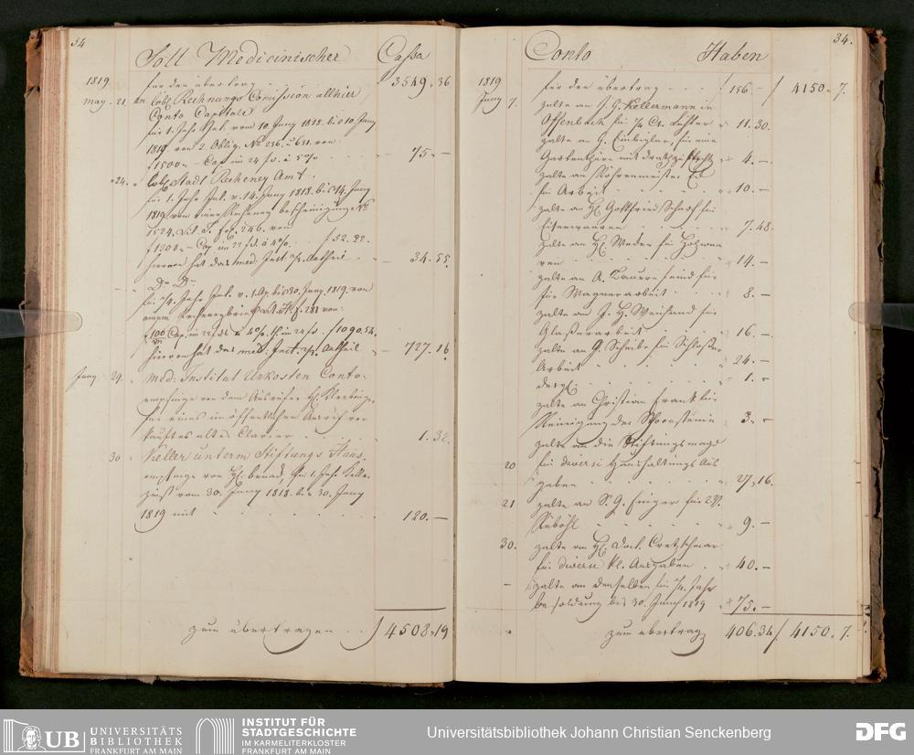 V48 Dr. Senckenbergische Stiftung, 63 - ... Kassenbrouillon des Dr. Senckenbergischen Medizinischen Instituts, Bd. 2