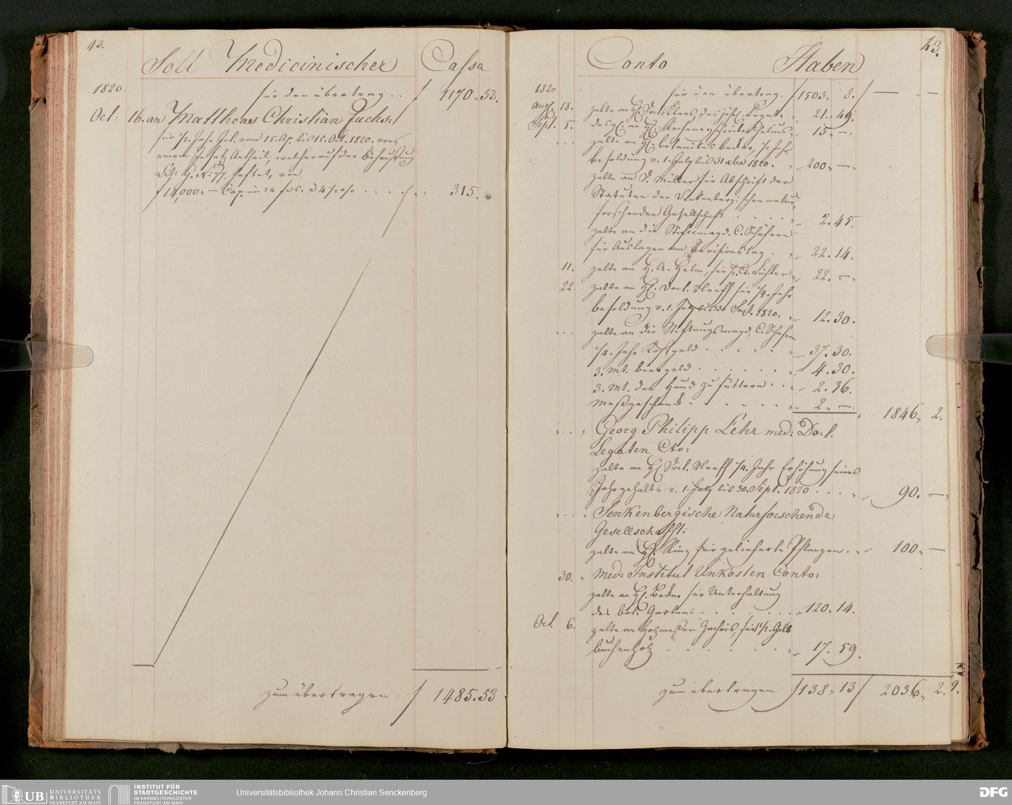 V48 Dr. Senckenbergische Stiftung, 63 - ... Kassenbrouillon des Dr. Senckenbergischen Medizinischen Instituts, Bd. 2