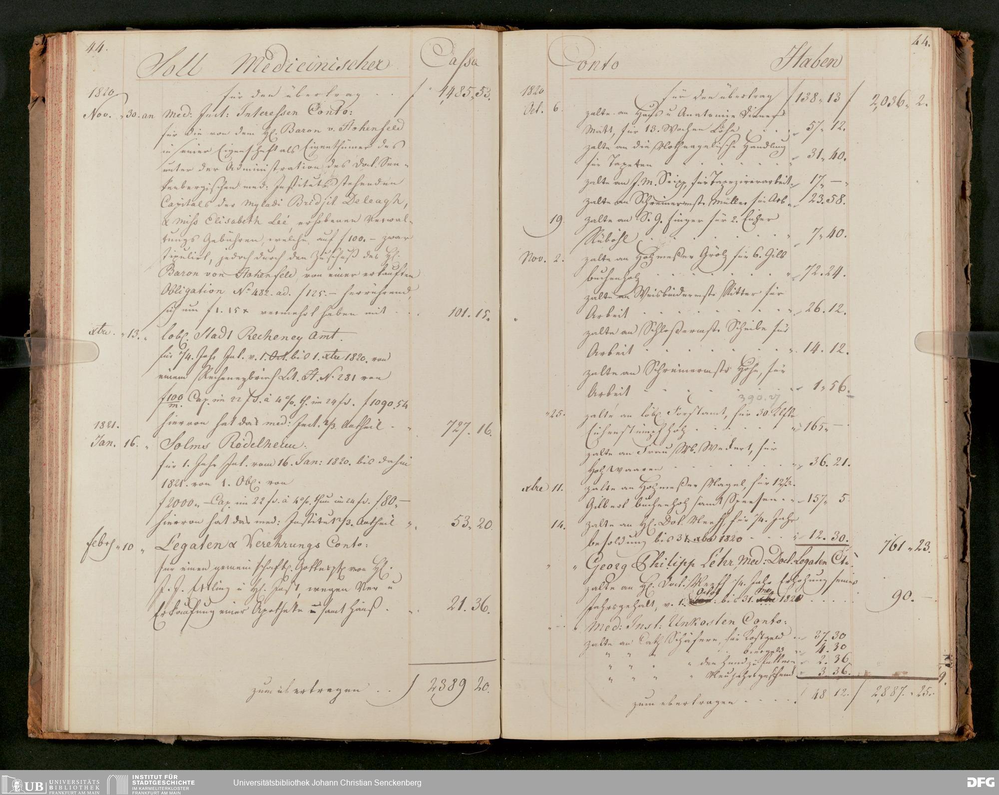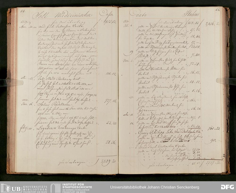 V48 Dr. Senckenbergische Stiftung, 63 - ... Kassenbrouillon des Dr. Senckenbergischen Medizinischen Instituts, Bd. 2