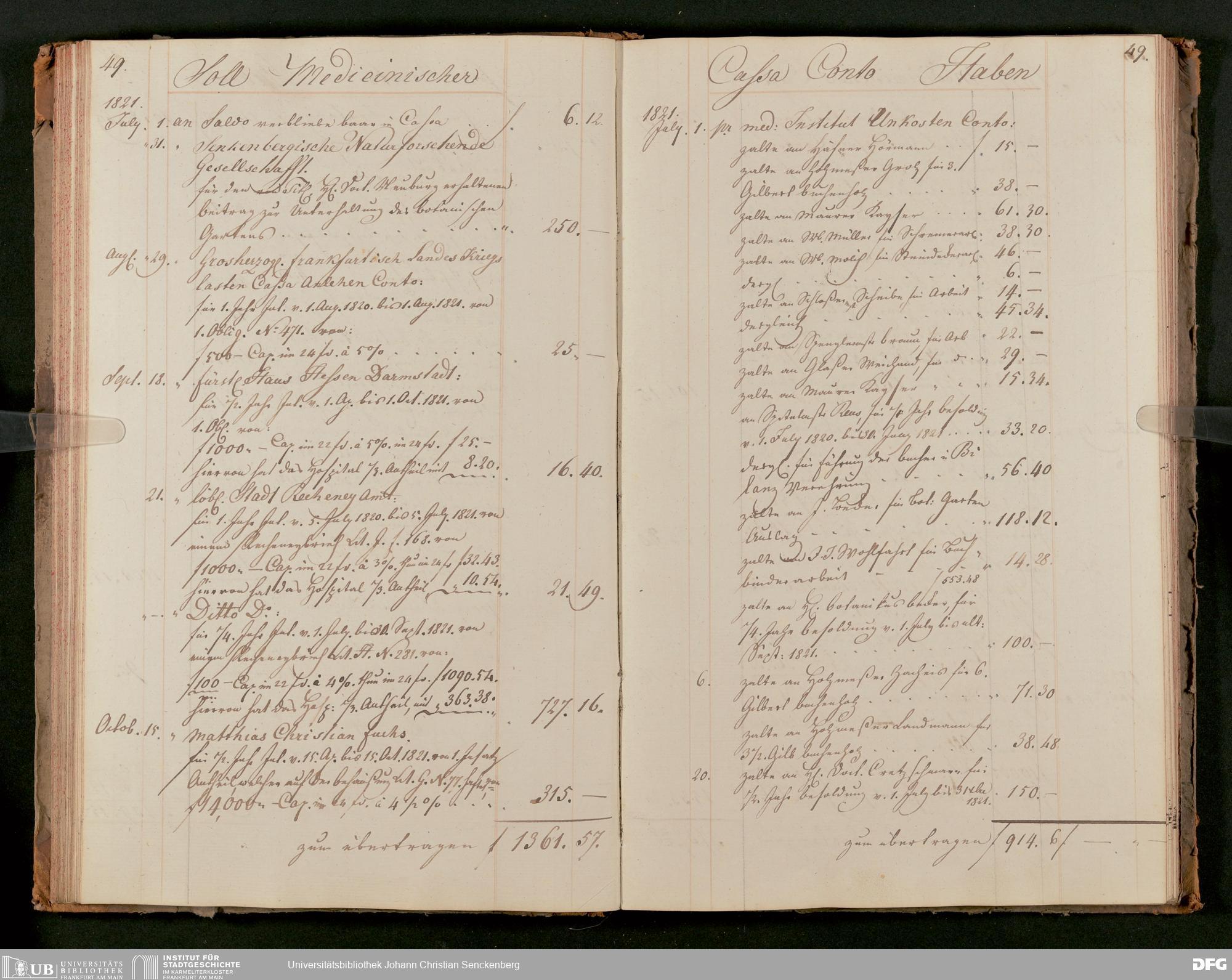 V48 Dr. Senckenbergische Stiftung, 63 - ... Kassenbrouillon des Dr. Senckenbergischen Medizinischen Instituts, Bd. 2