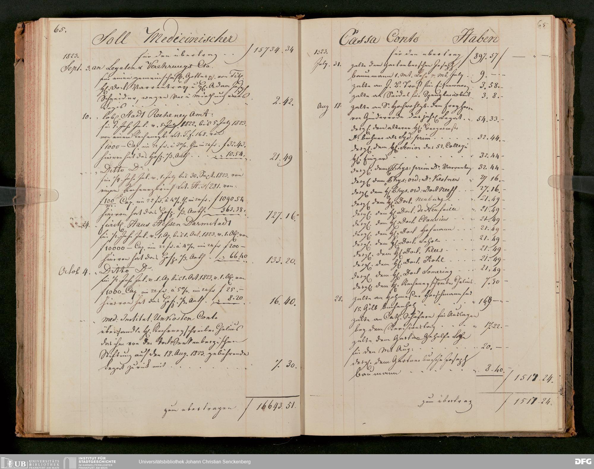 V48 Dr. Senckenbergische Stiftung, 63 - ... Kassenbrouillon des Dr. Senckenbergischen Medizinischen Instituts, Bd. 2