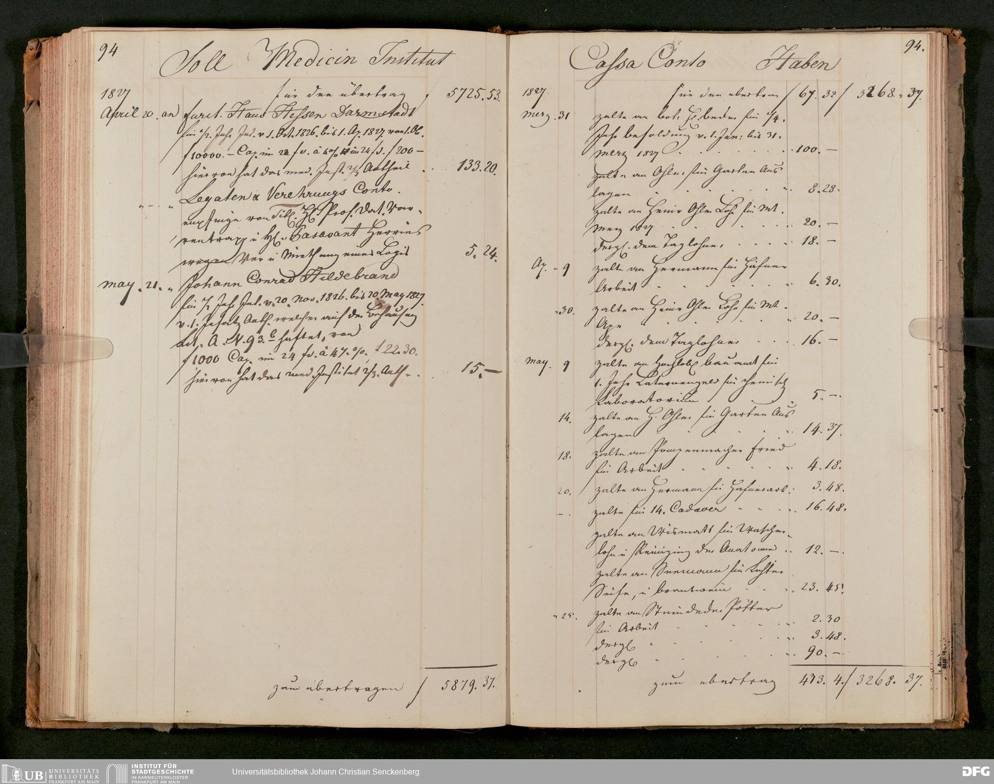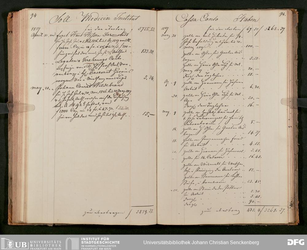 V48 Dr. Senckenbergische Stiftung, 63 - ... Kassenbrouillon des Dr. Senckenbergischen Medizinischen Instituts, Bd. 2