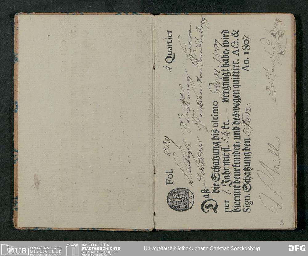 V48 Dr. Senckenbergische Stiftung, 81 - Quittungen über Schatzungsabgaben der Dr. Senckenbergischen Stiftung