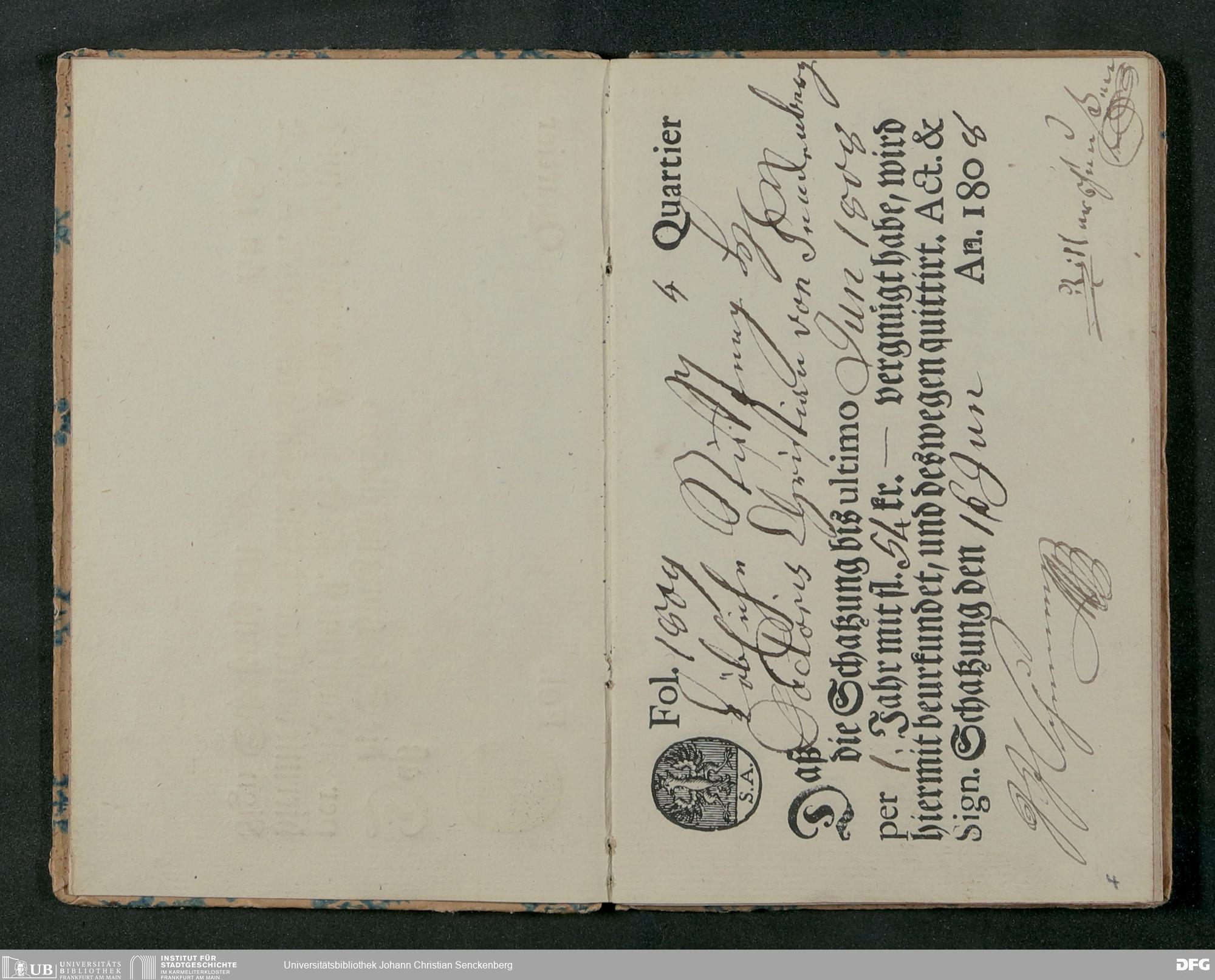 V48 Dr. Senckenbergische Stiftung, 81 - Quittungen über Schatzungsabgaben der Dr. Senckenbergischen Stiftung