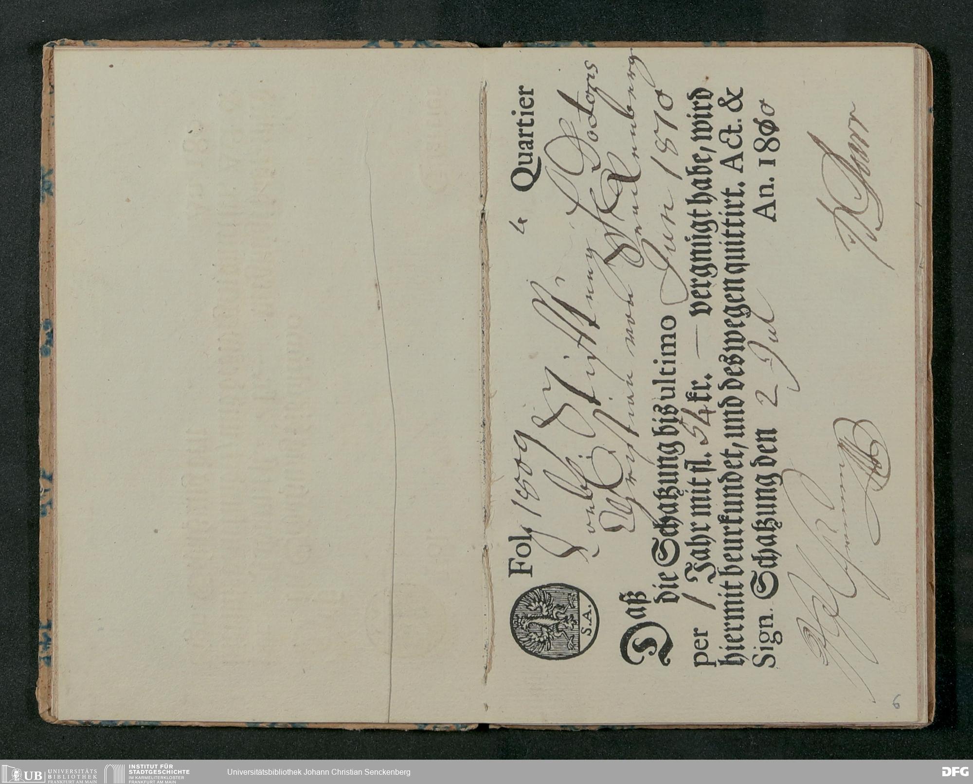 V48 Dr. Senckenbergische Stiftung, 81 - Quittungen über Schatzungsabgaben der Dr. Senckenbergischen Stiftung