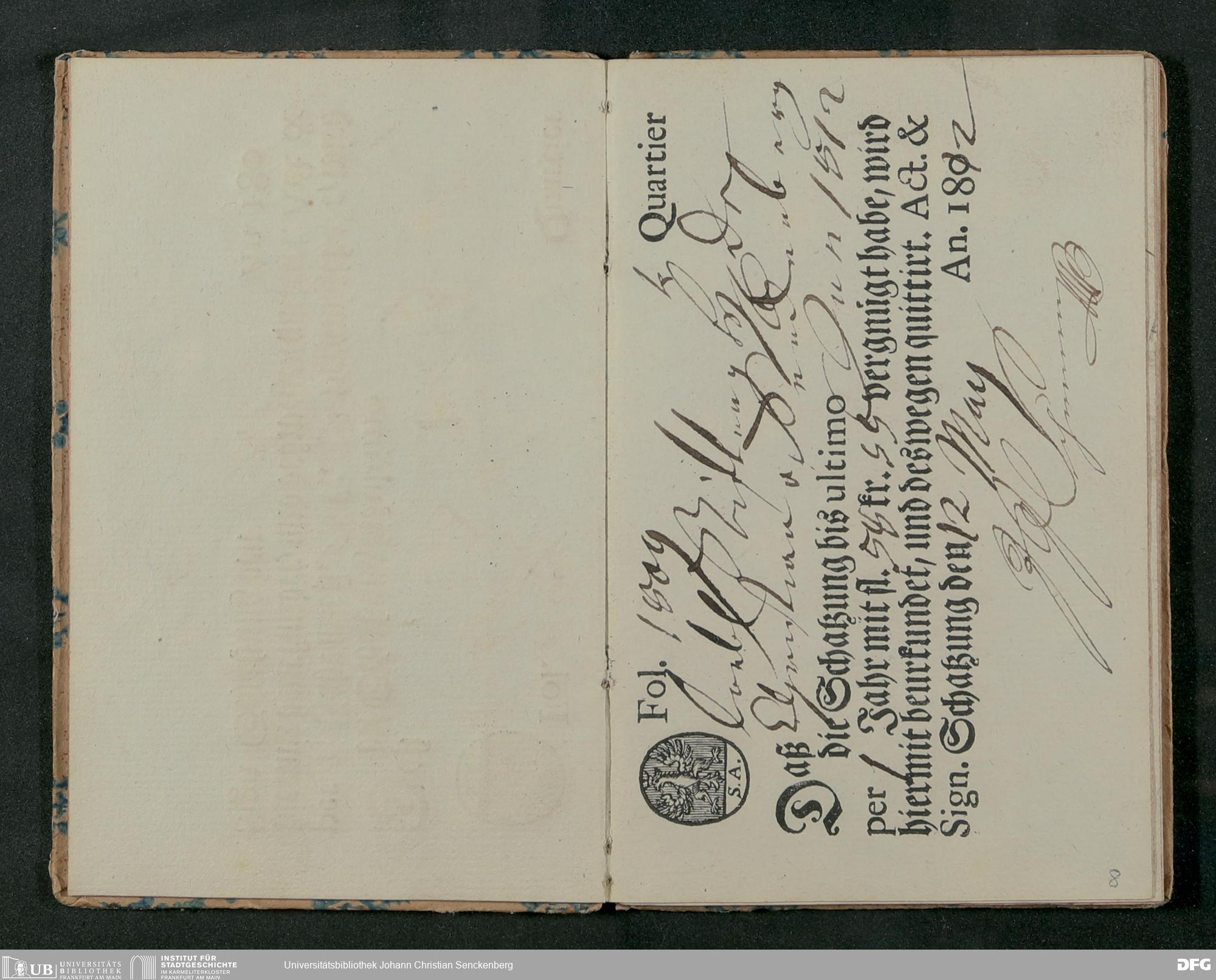 V48 Dr. Senckenbergische Stiftung, 81 - Quittungen über Schatzungsabgaben der Dr. Senckenbergischen Stiftung
