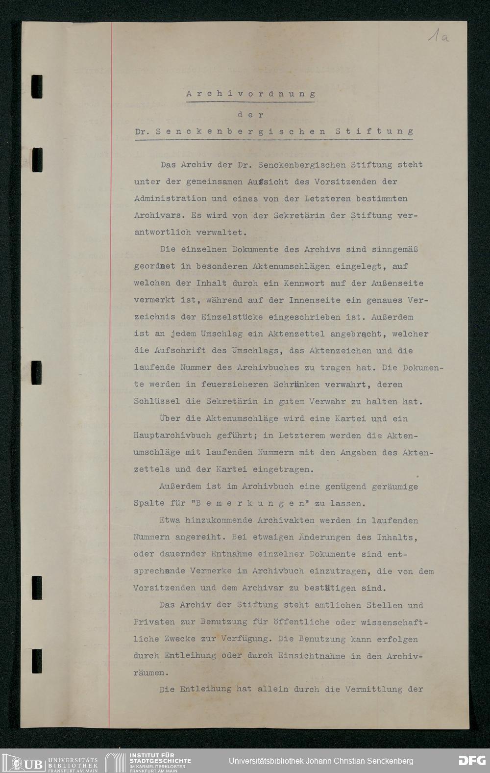 V48 Dr. Senckenbergische Stiftung, 86 - Archivordnung