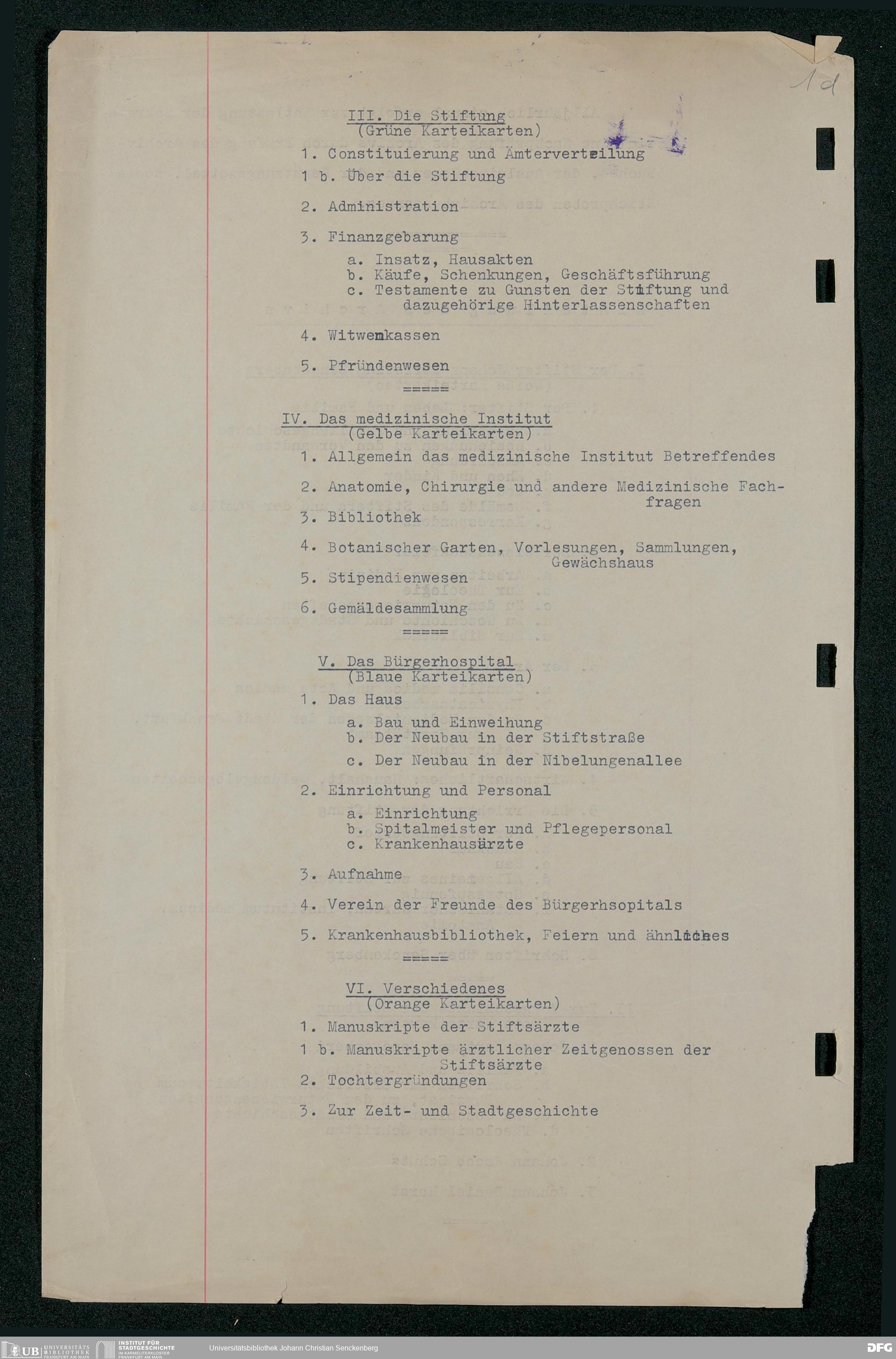 V48 Dr. Senckenbergische Stiftung, 86 - Archivordnung