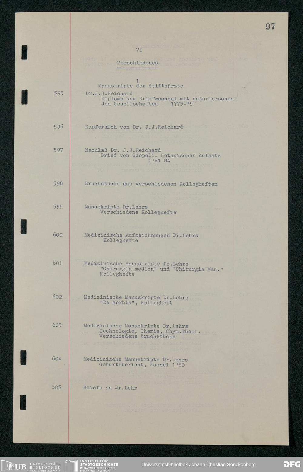 Nachlass Johann Christian Senckenberg