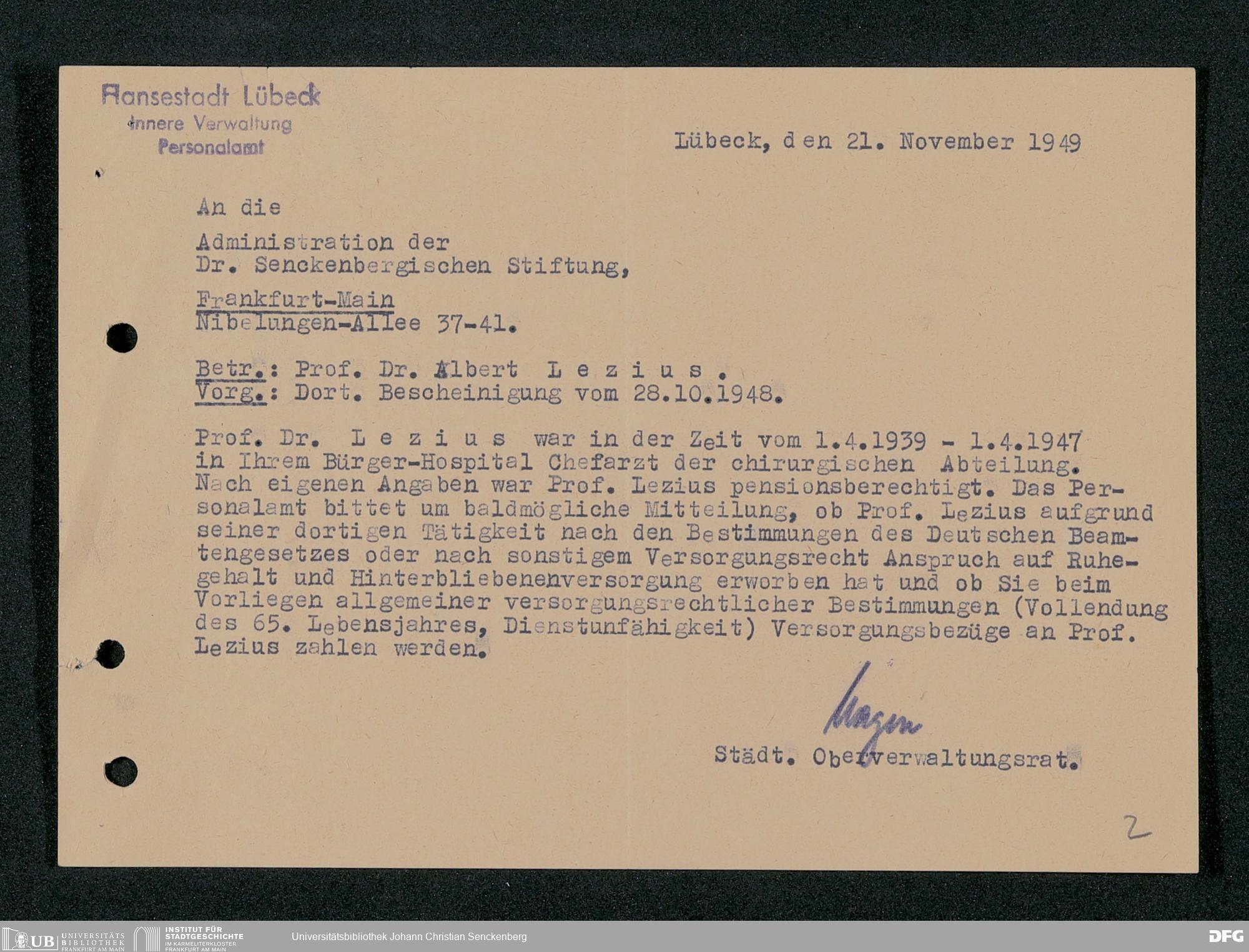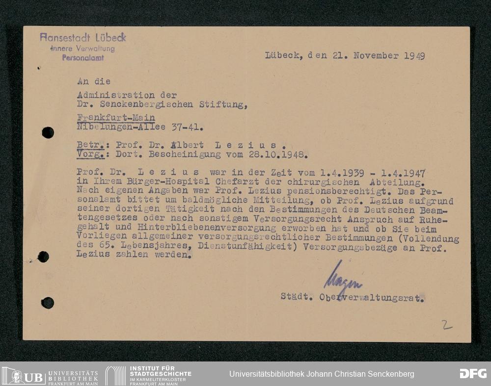 V48 Dr. Senckenbergische Stiftung, 92 - Dr. Albert Lezius, Chefarzt der Chirurgischen Klinik