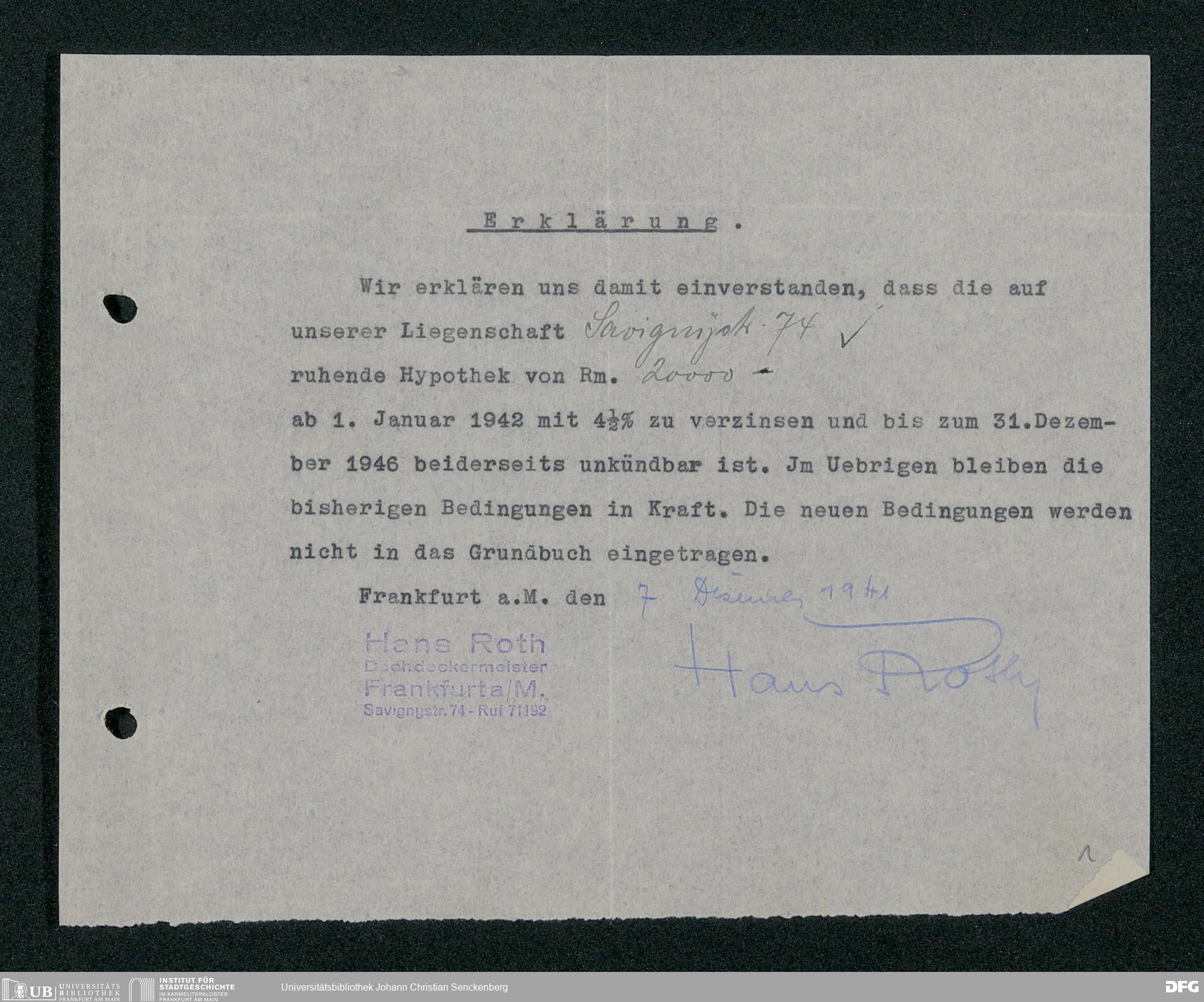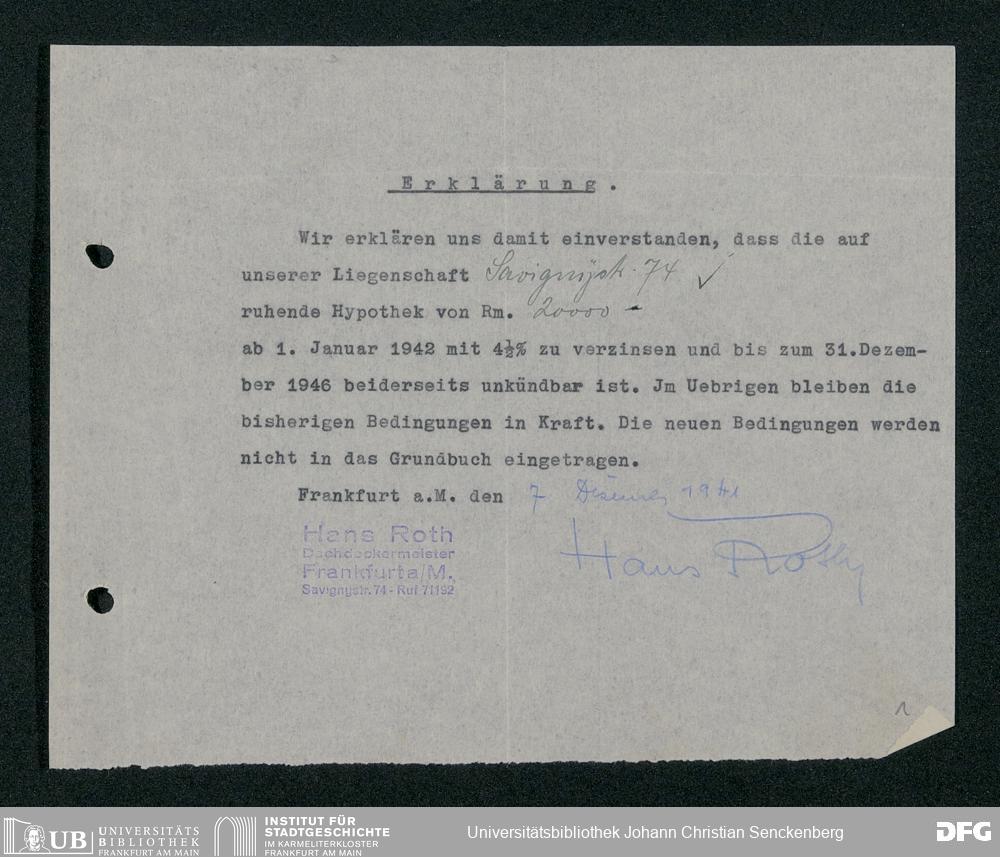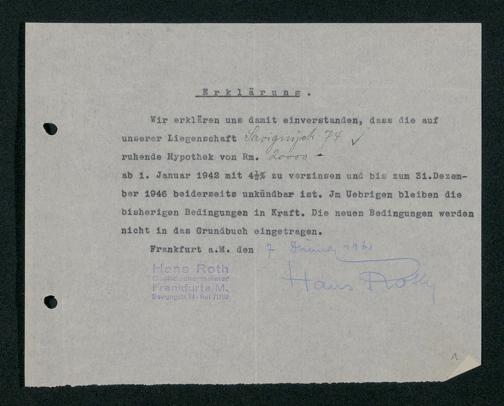 V48 Dr. Senckenbergische Stiftung, 114 - Zustimmungserklärungen für Zinssenkungen der Hypotheken