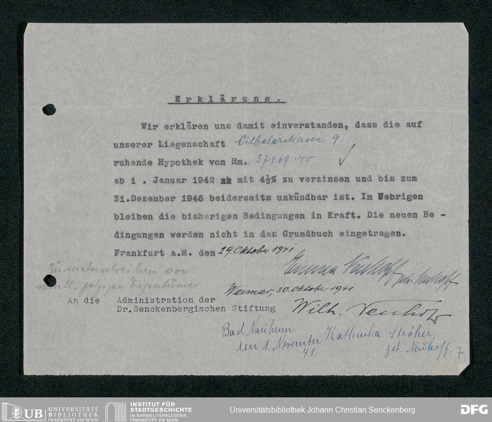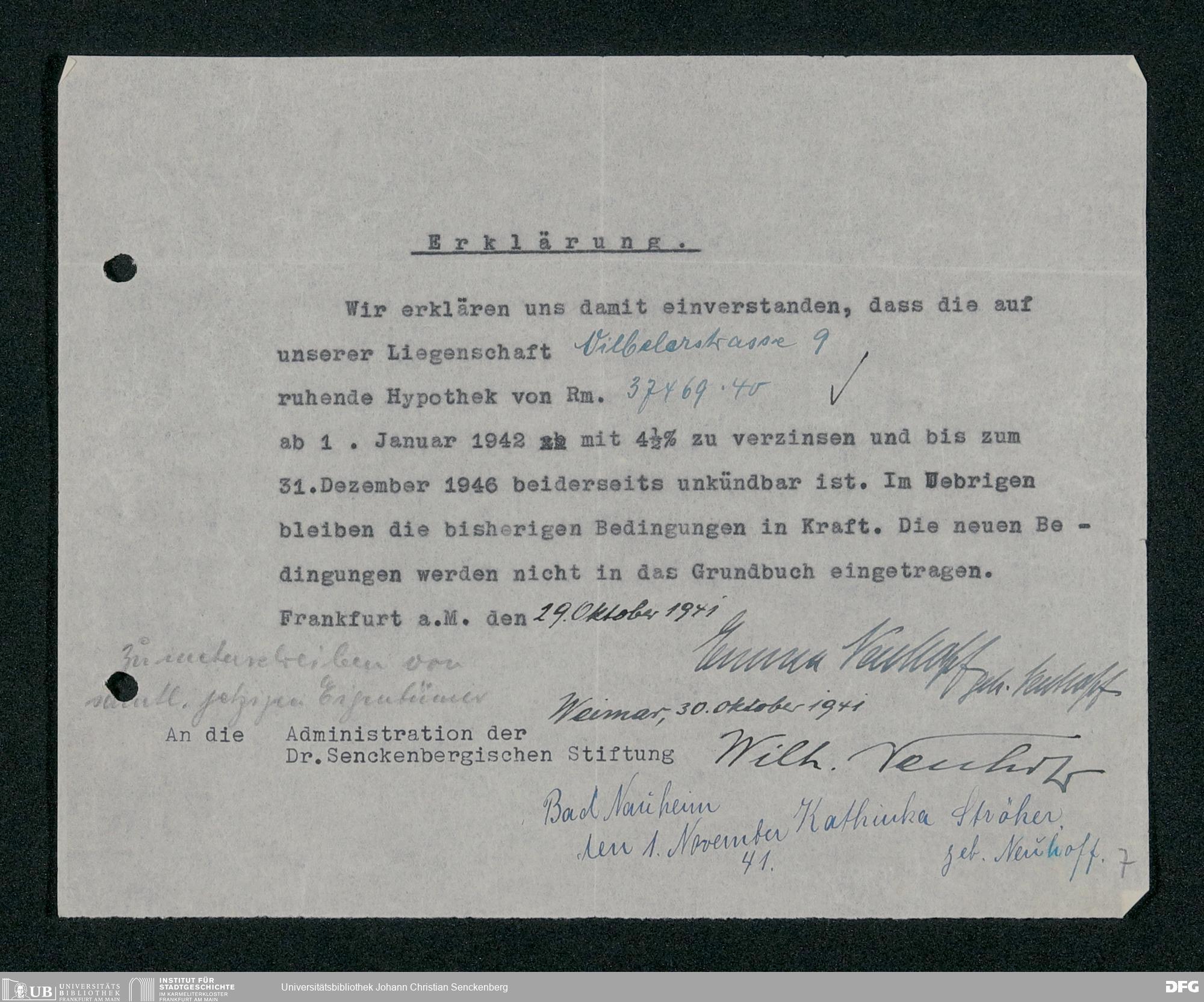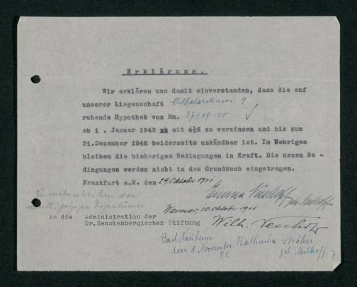 V48 Dr. Senckenbergische Stiftung, 114 - Zustimmungserklärungen für Zinssenkungen der Hypotheken