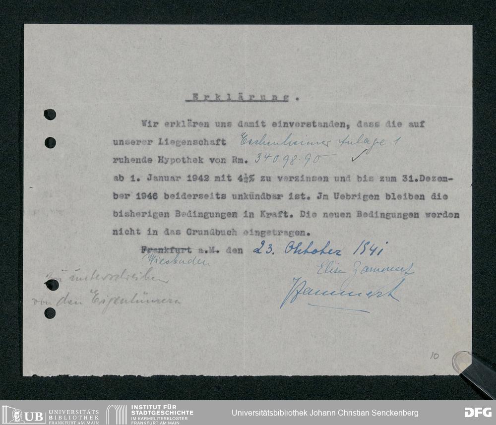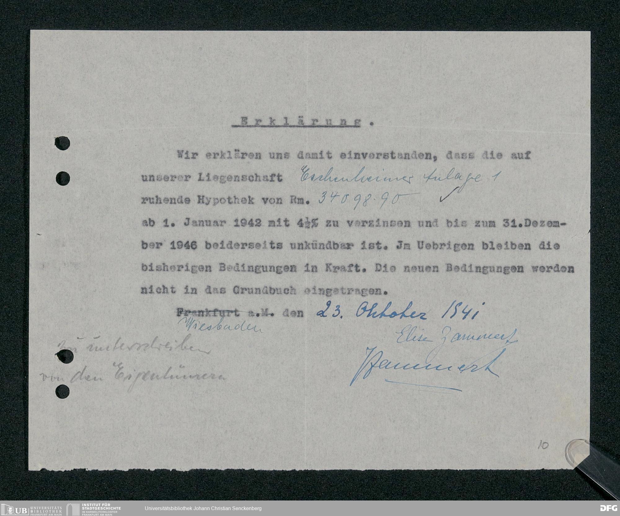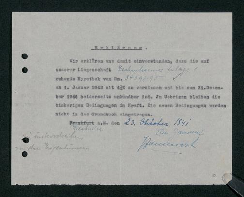 V48 Dr. Senckenbergische Stiftung, 114 - Zustimmungserklärungen für Zinssenkungen der Hypotheken