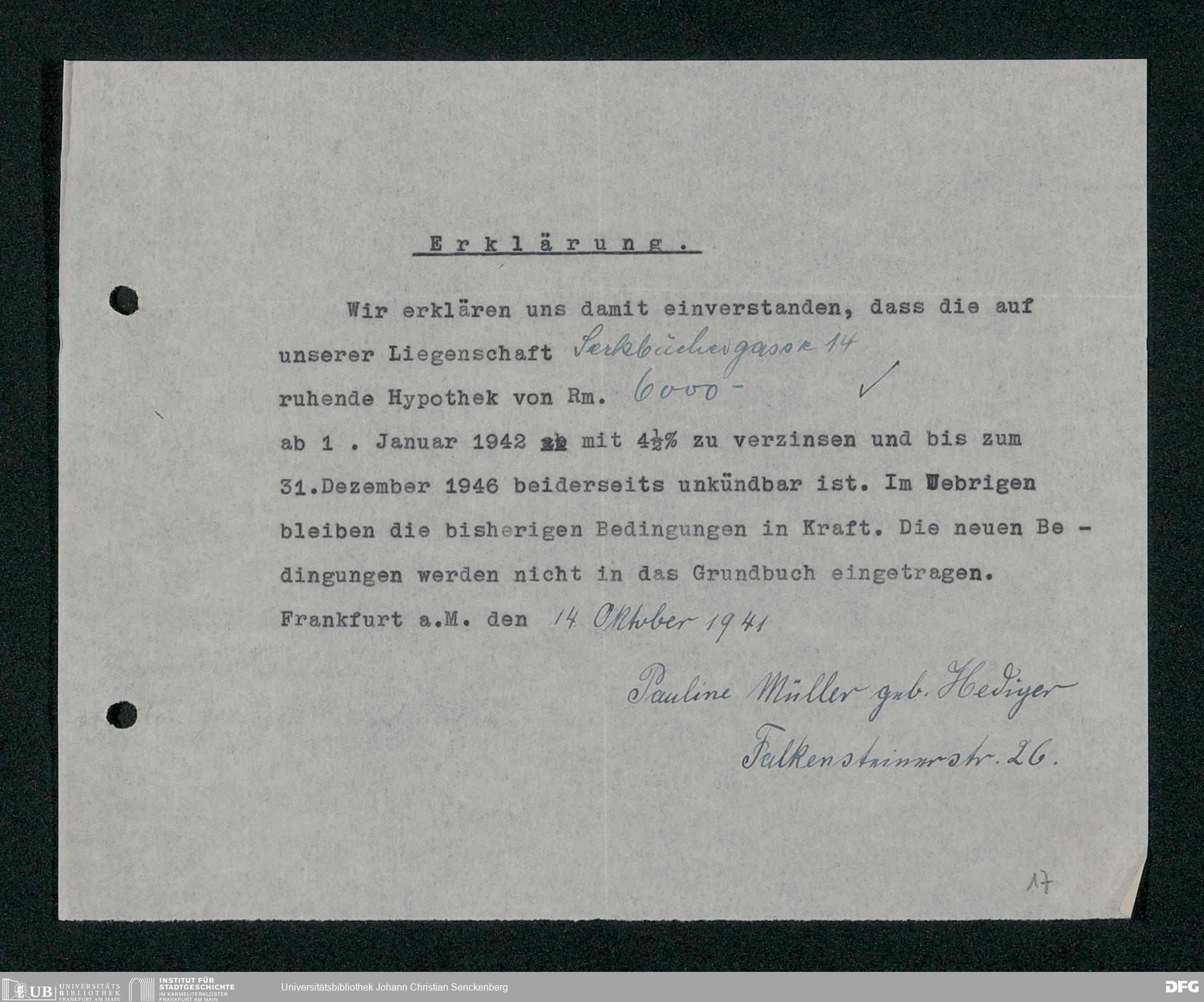 V48 Dr. Senckenbergische Stiftung, 114 - Zustimmungserklärungen für Zinssenkungen der Hypotheken