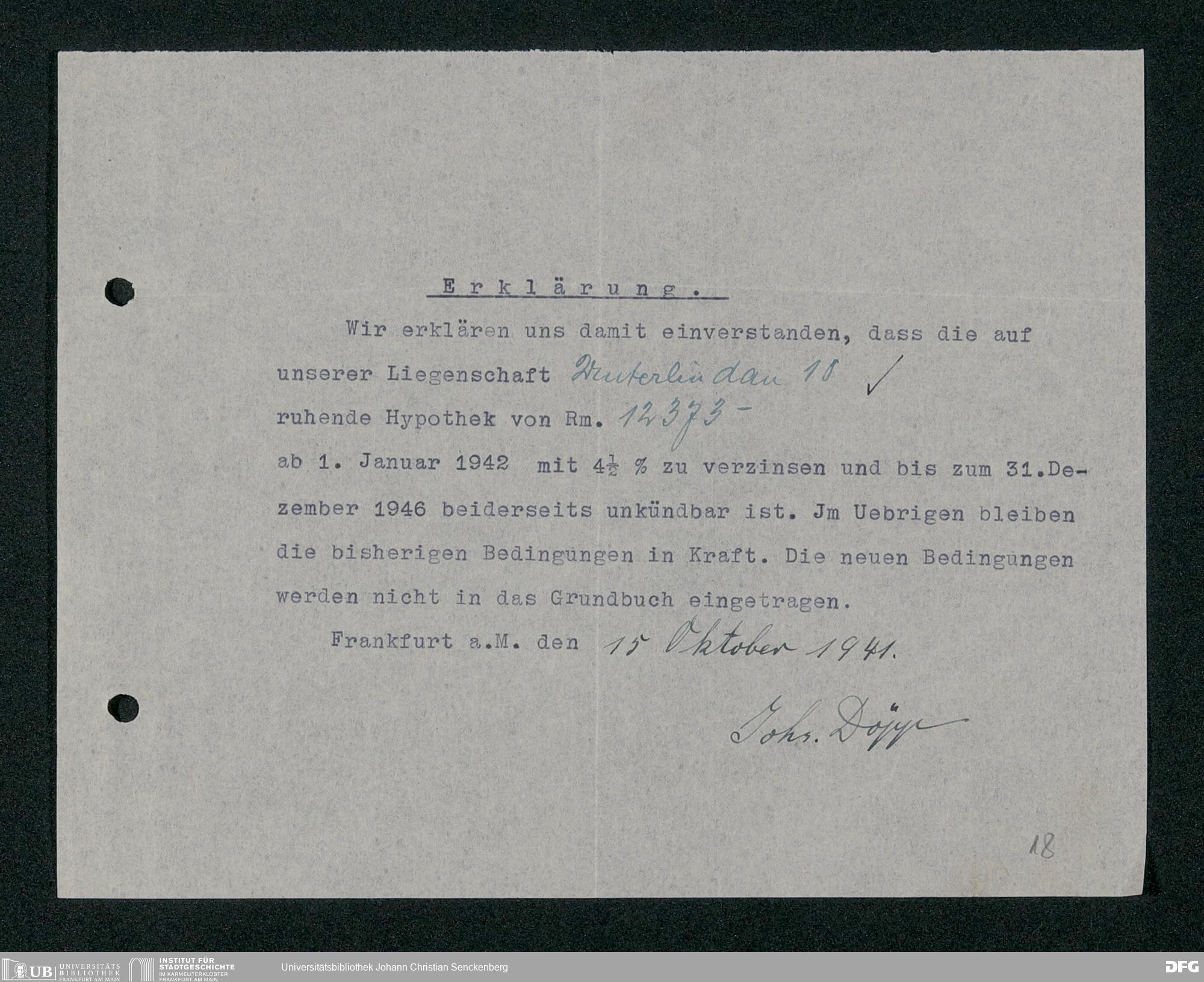 V48 Dr. Senckenbergische Stiftung, 114 - Zustimmungserklärungen für Zinssenkungen der Hypotheken