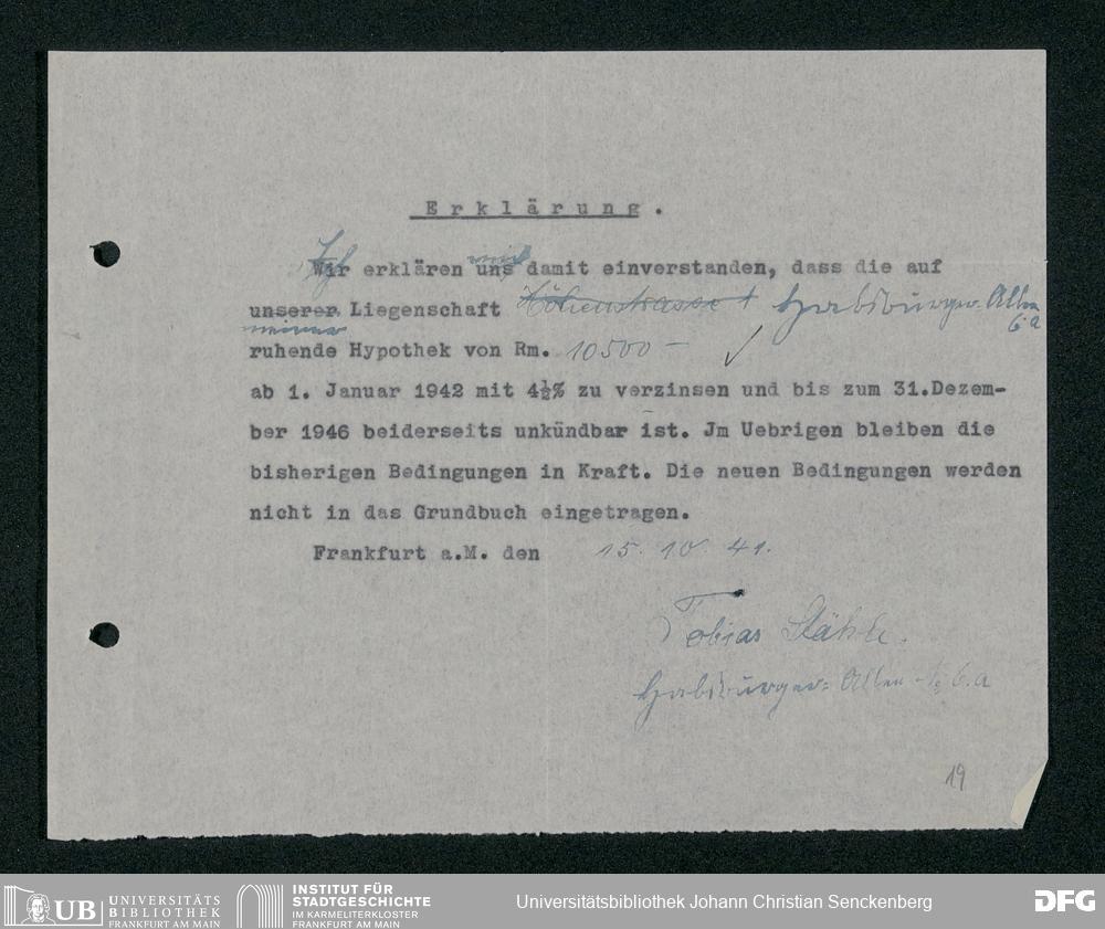 V48 Dr. Senckenbergische Stiftung, 114 - Zustimmungserklärungen für Zinssenkungen der Hypotheken