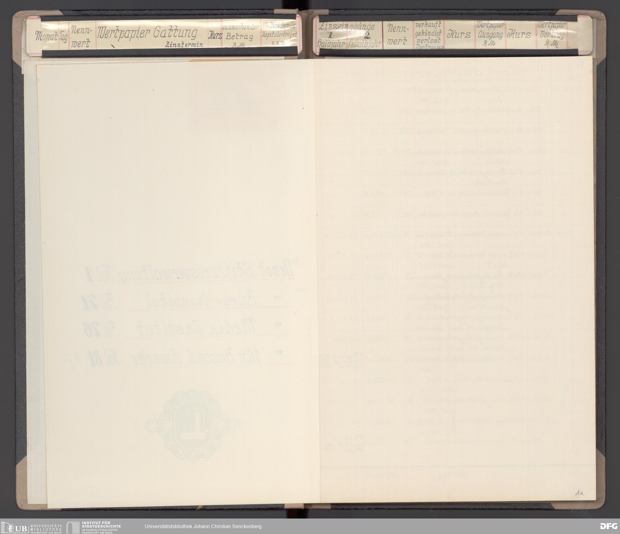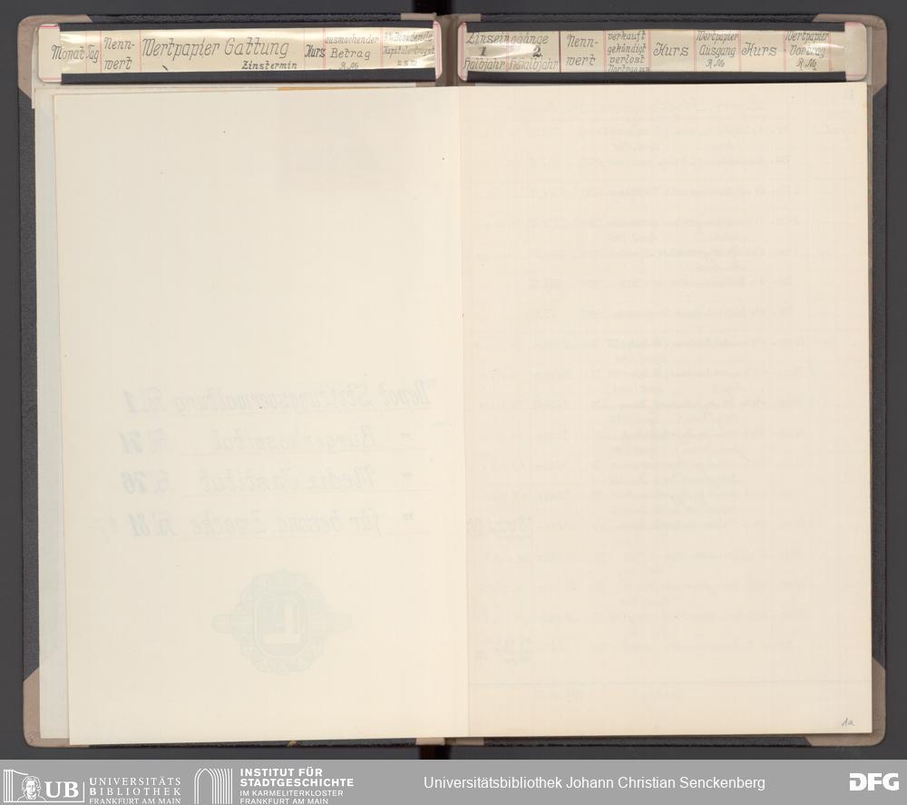 V48 Dr. Senckenbergische Stiftung, 116 - Wertpapier-Skonto Depot: Stiftungsverwaltung, Bürgerhospital, Medizinisches Institut und für besondere Zwecke