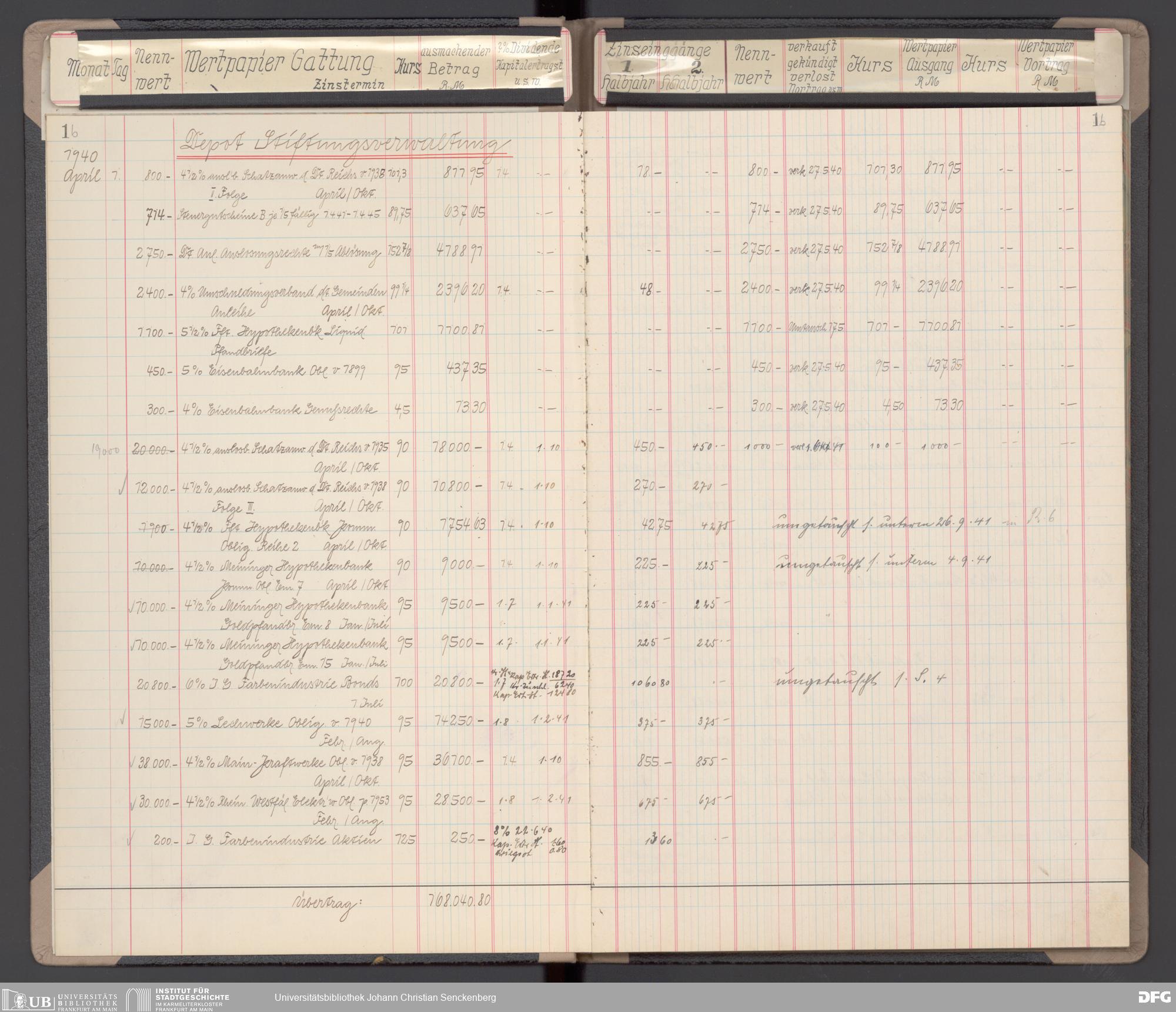 V48 Dr. Senckenbergische Stiftung, 116 - Wertpapier-Skonto Depot: Stiftungsverwaltung, Bürgerhospital, Medizinisches Institut und für besondere Zwecke