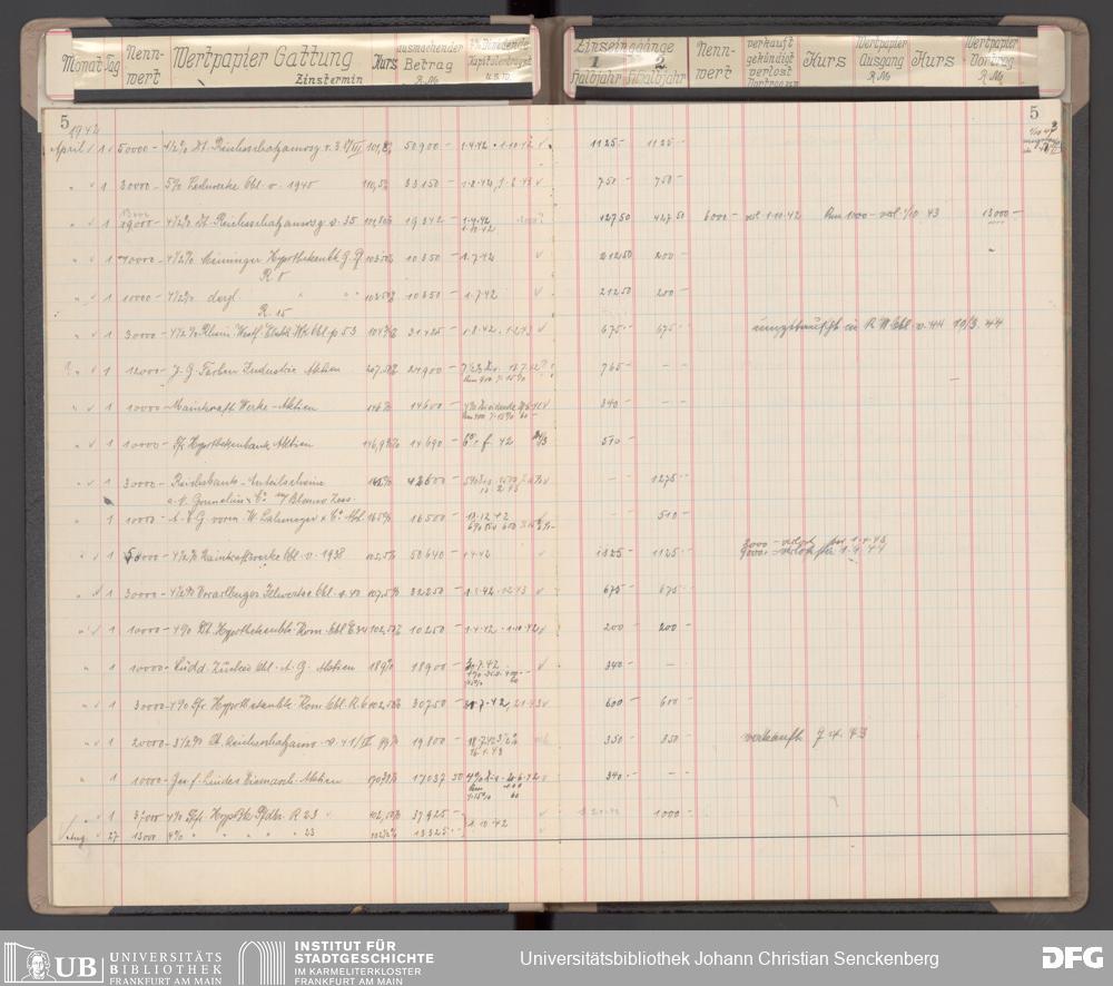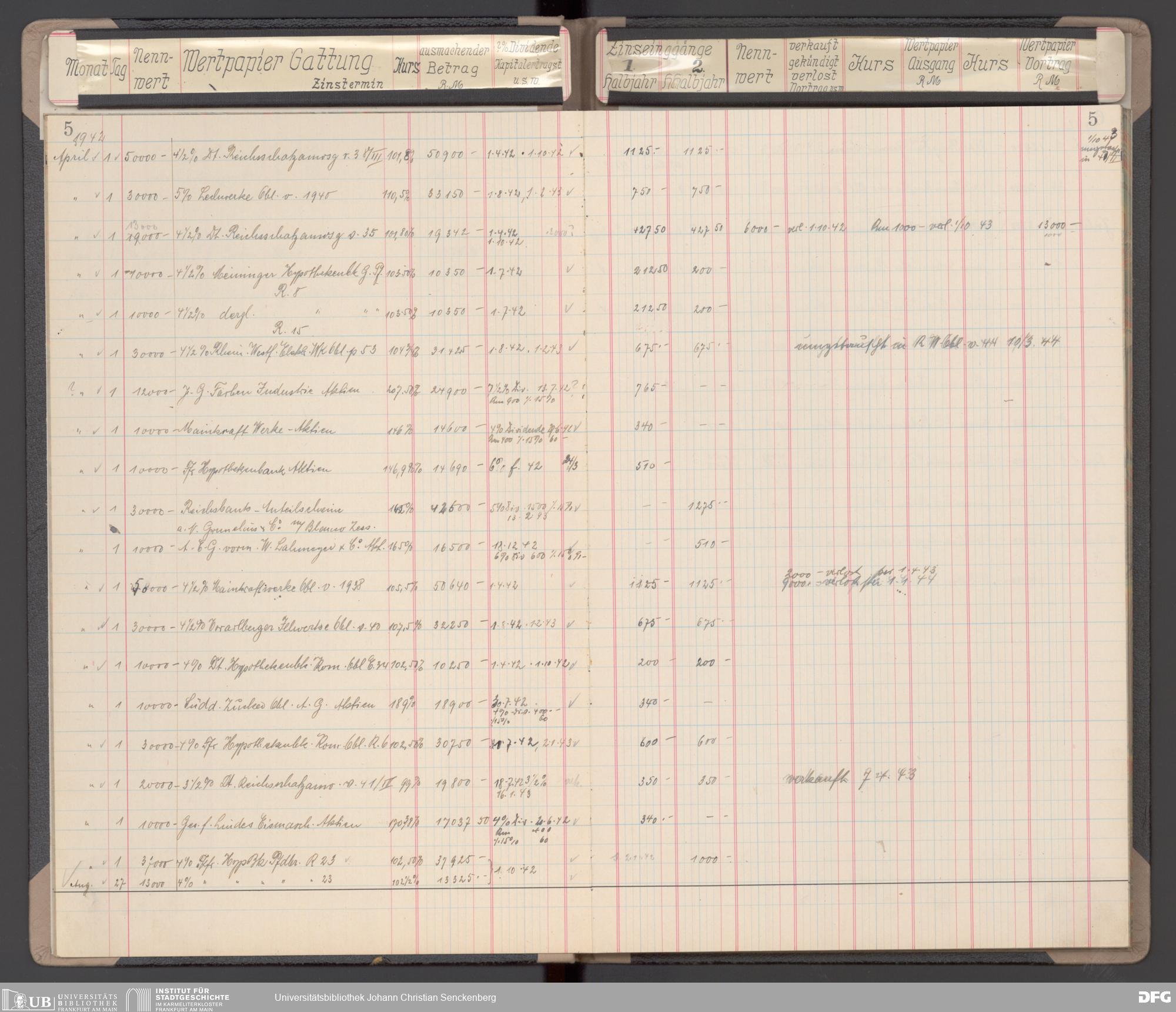 V48 Dr. Senckenbergische Stiftung, 116 - Wertpapier-Skonto Depot: Stiftungsverwaltung, Bürgerhospital, Medizinisches Institut und für besondere Zwecke