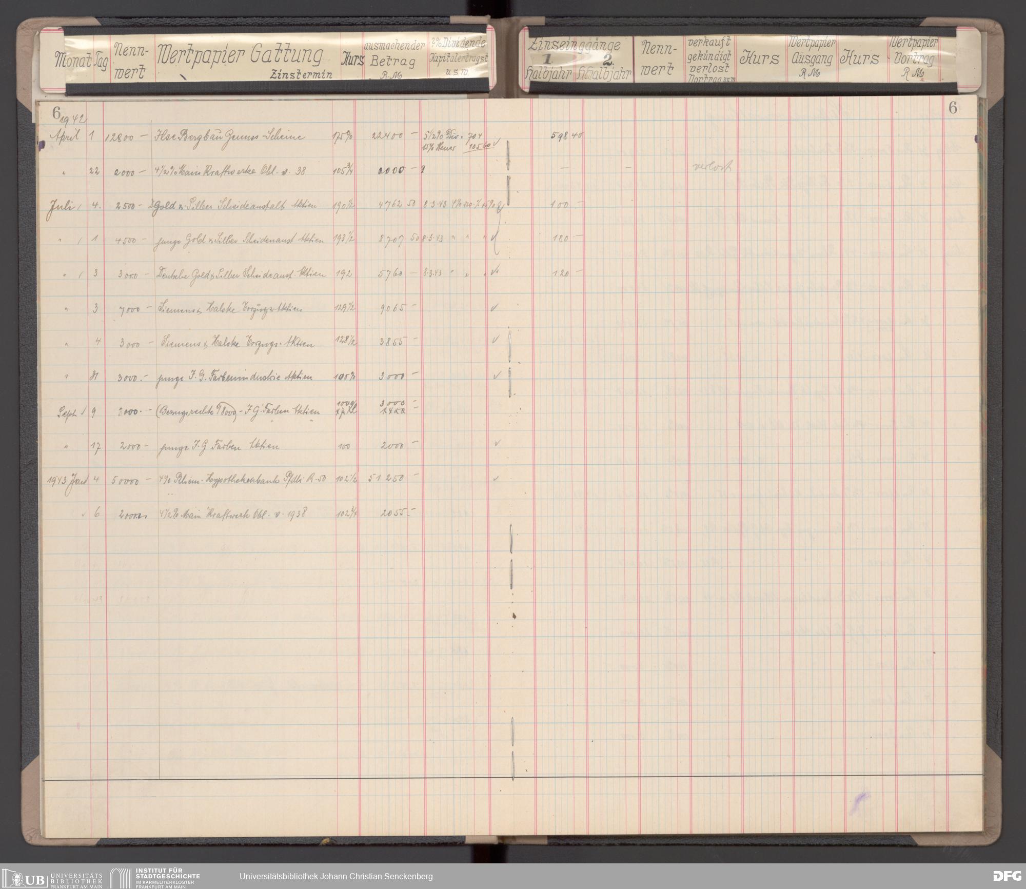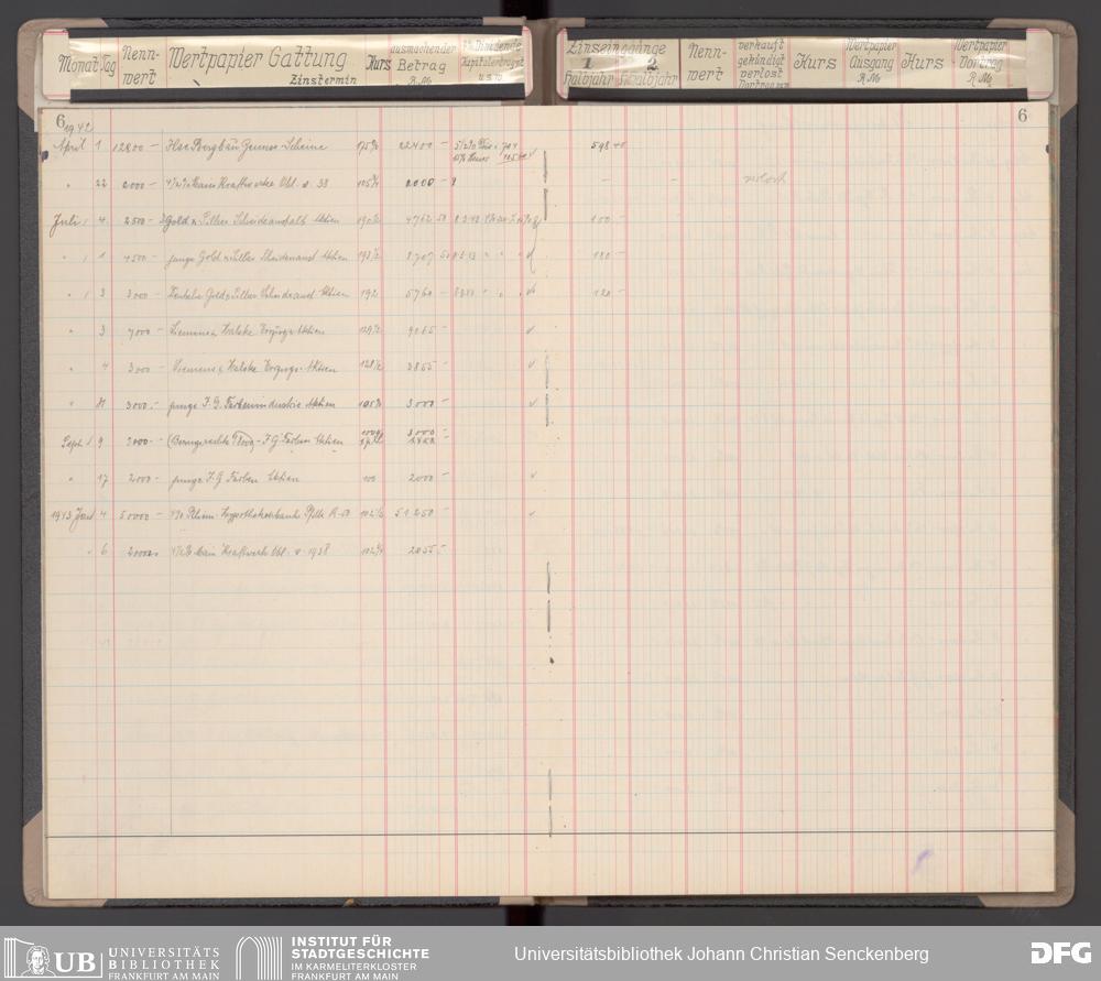 V48 Dr. Senckenbergische Stiftung, 116 - Wertpapier-Skonto Depot: Stiftungsverwaltung, Bürgerhospital, Medizinisches Institut und für besondere Zwecke