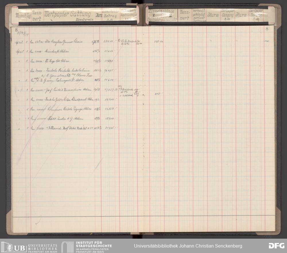 V48 Dr. Senckenbergische Stiftung, 116 - Wertpapier-Skonto Depot: Stiftungsverwaltung, Bürgerhospital, Medizinisches Institut und für besondere Zwecke
