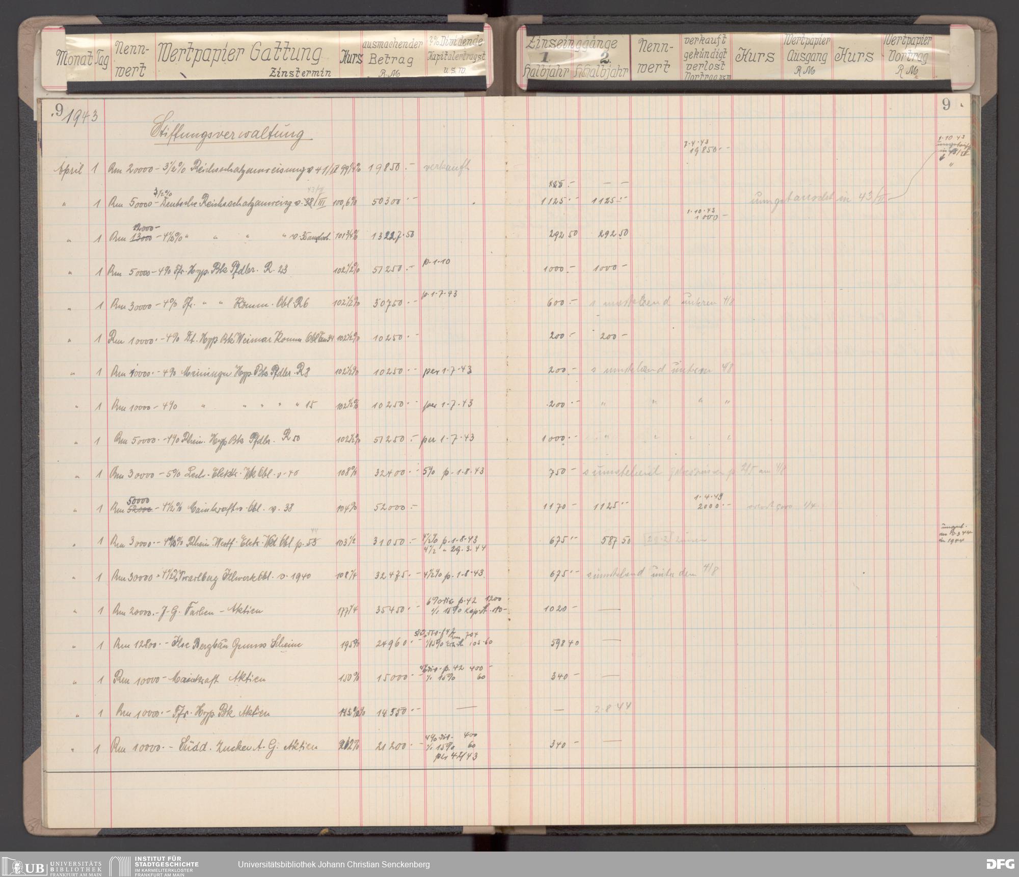V48 Dr. Senckenbergische Stiftung, 116 - Wertpapier-Skonto Depot: Stiftungsverwaltung, Bürgerhospital, Medizinisches Institut und für besondere Zwecke