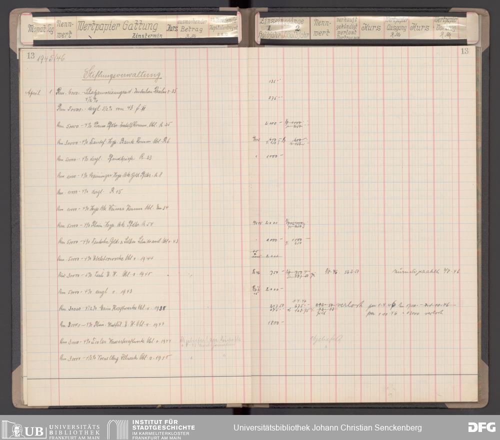 V48 Dr. Senckenbergische Stiftung, 116 - Wertpapier-Skonto Depot: Stiftungsverwaltung, Bürgerhospital, Medizinisches Institut und für besondere Zwecke