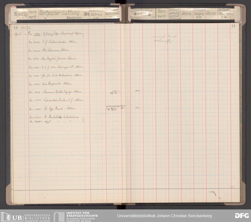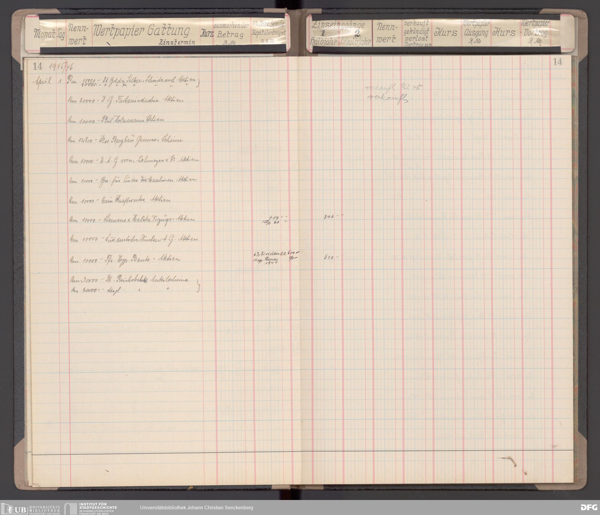 V48 Dr. Senckenbergische Stiftung, 116 - Wertpapier-Skonto Depot: Stiftungsverwaltung, Bürgerhospital, Medizinisches Institut und für besondere Zwecke