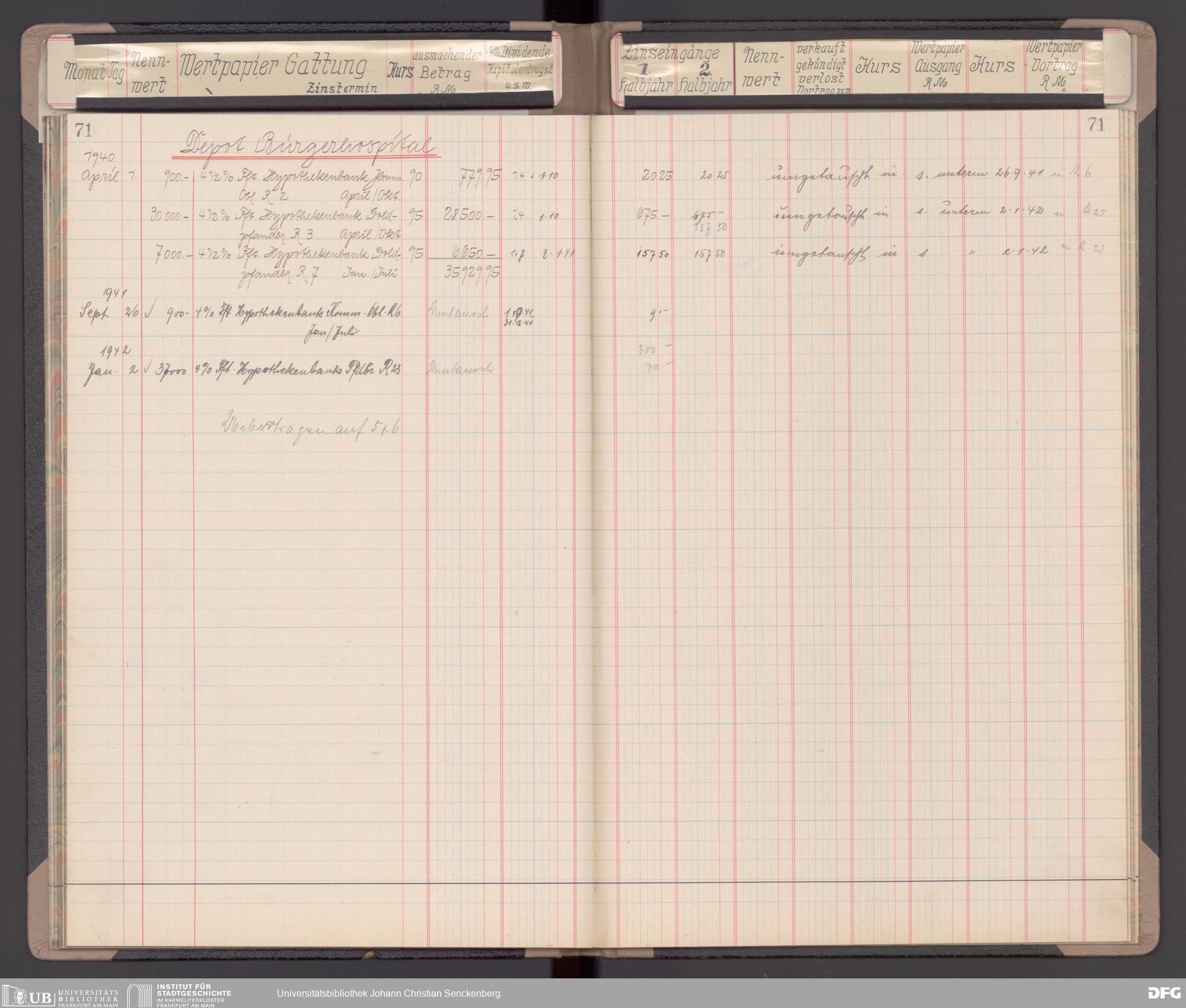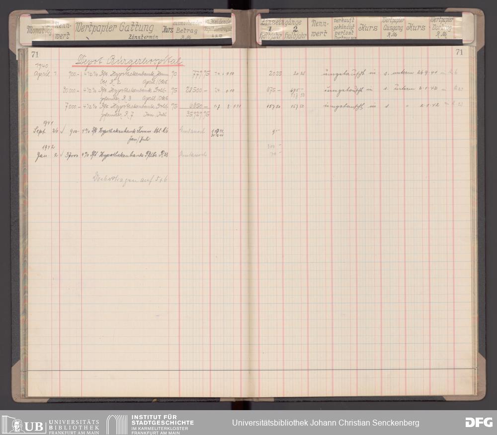 V48 Dr. Senckenbergische Stiftung, 116 - Wertpapier-Skonto Depot: Stiftungsverwaltung, Bürgerhospital, Medizinisches Institut und für besondere Zwecke