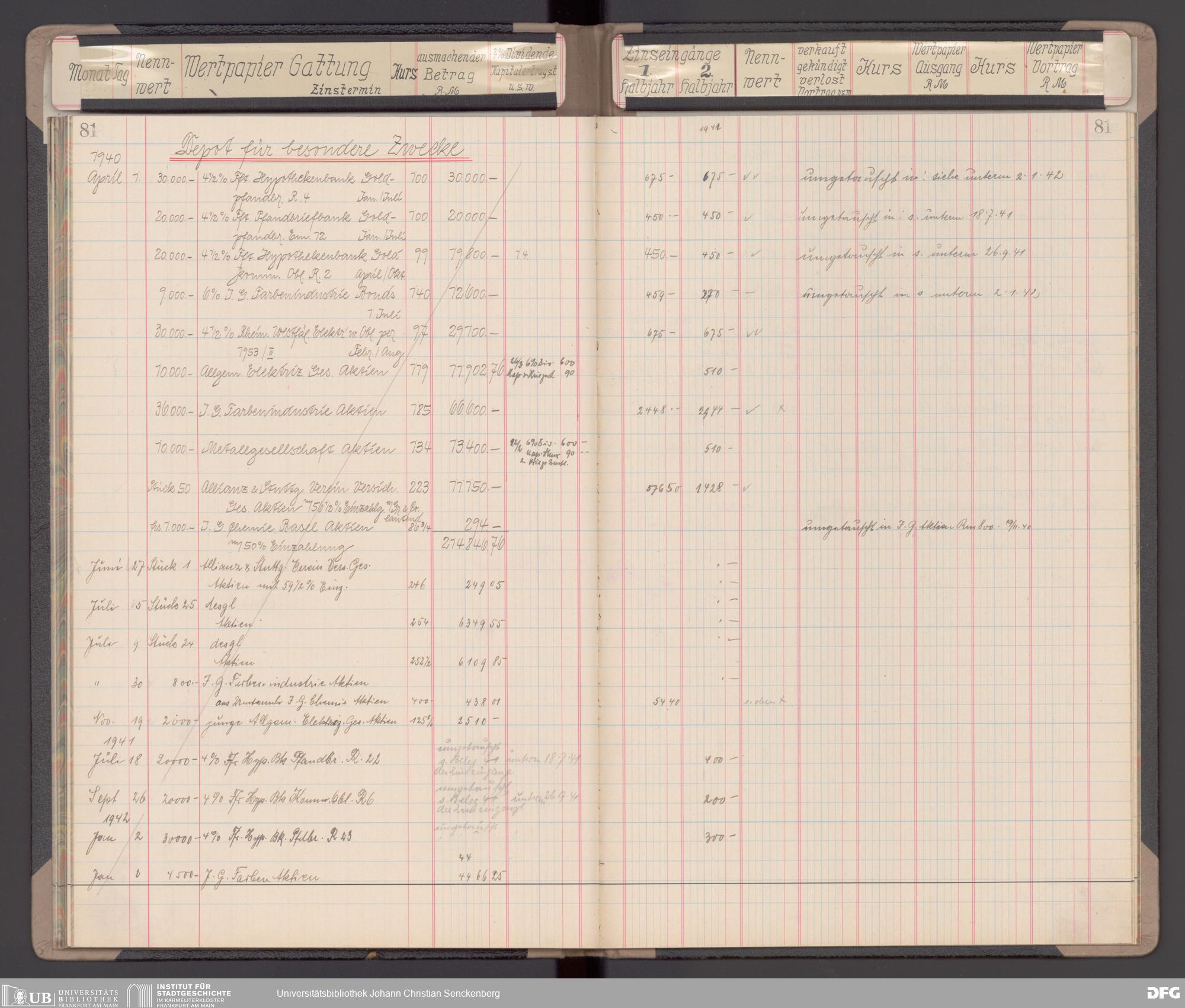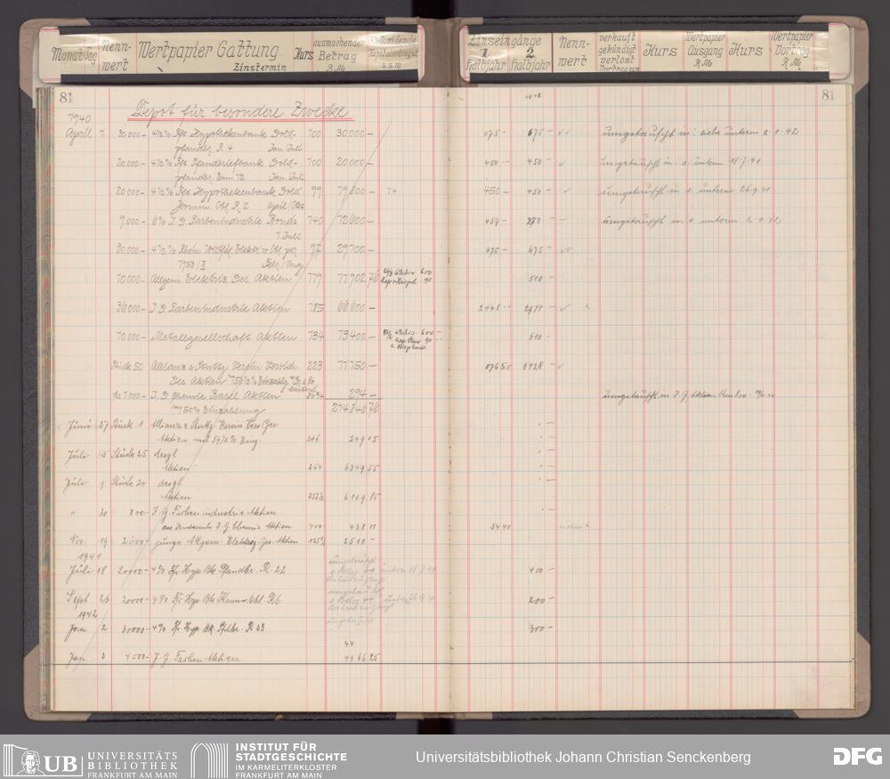 V48 Dr. Senckenbergische Stiftung, 116 - Wertpapier-Skonto Depot: Stiftungsverwaltung, Bürgerhospital, Medizinisches Institut und für besondere Zwecke