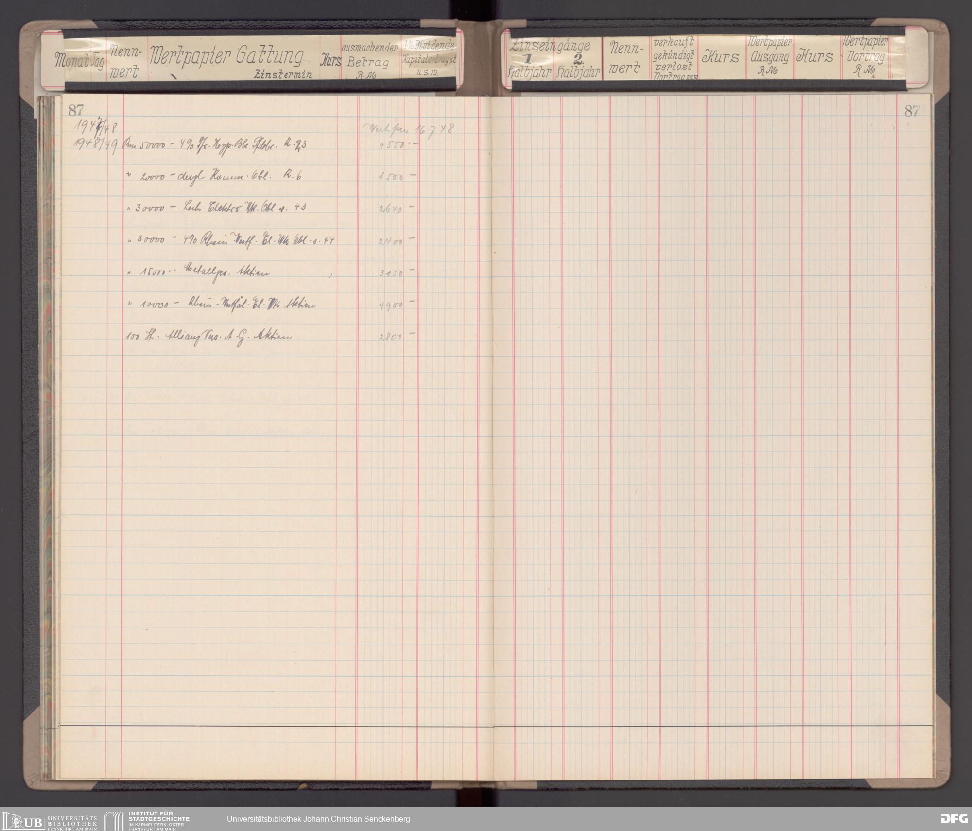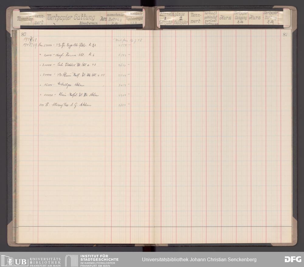 V48 Dr. Senckenbergische Stiftung, 116 - Wertpapier-Skonto Depot: Stiftungsverwaltung, Bürgerhospital, Medizinisches Institut und für besondere Zwecke