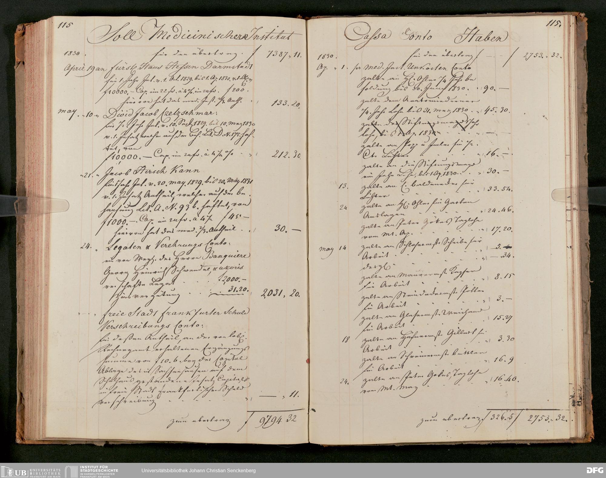 V48 Dr. Senckenbergische Stiftung, 63 - ... Kassenbrouillon des Dr. Senckenbergischen Medizinischen Instituts, Bd. 2