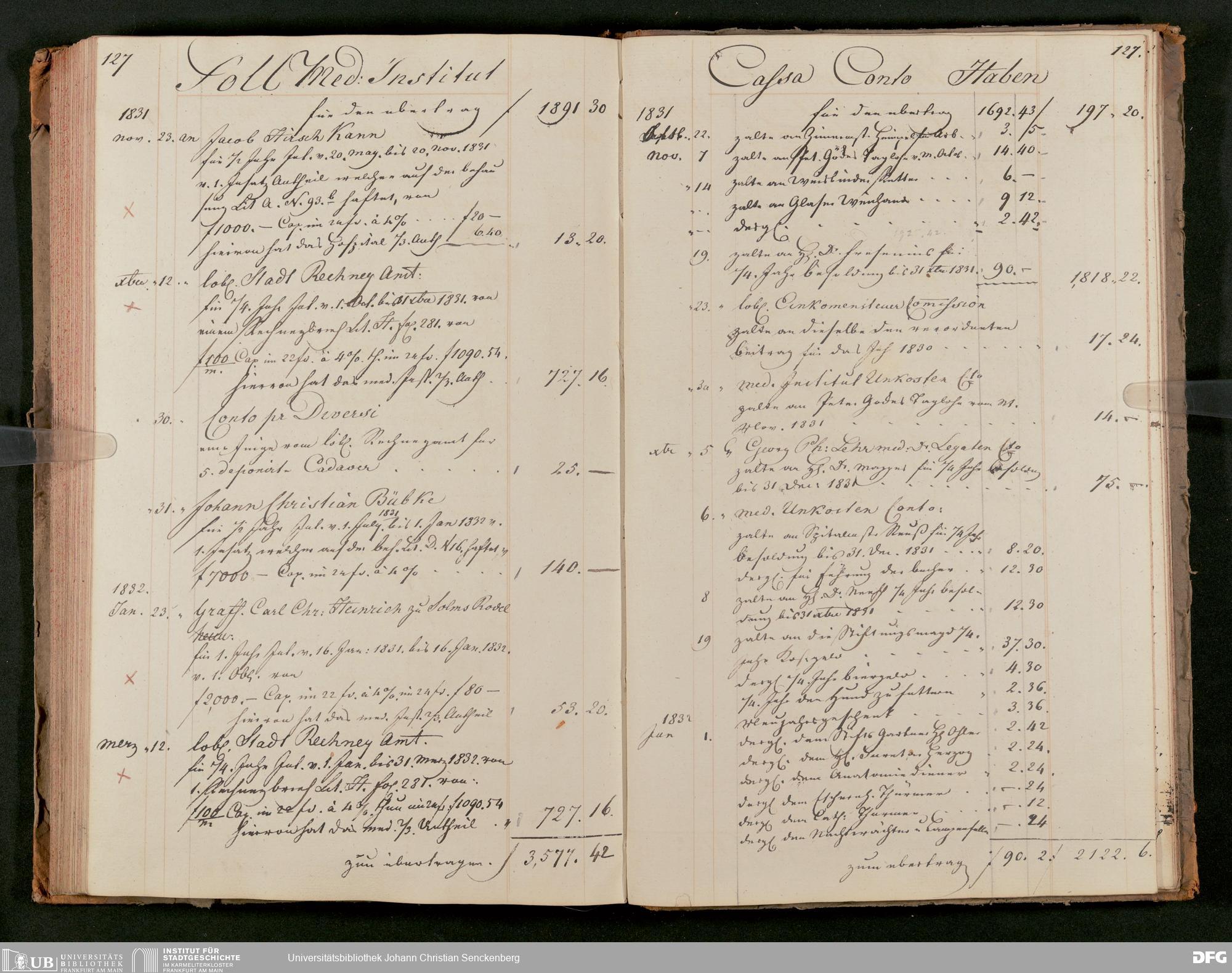 V48 Dr. Senckenbergische Stiftung, 63 - ... Kassenbrouillon des Dr. Senckenbergischen Medizinischen Instituts, Bd. 2