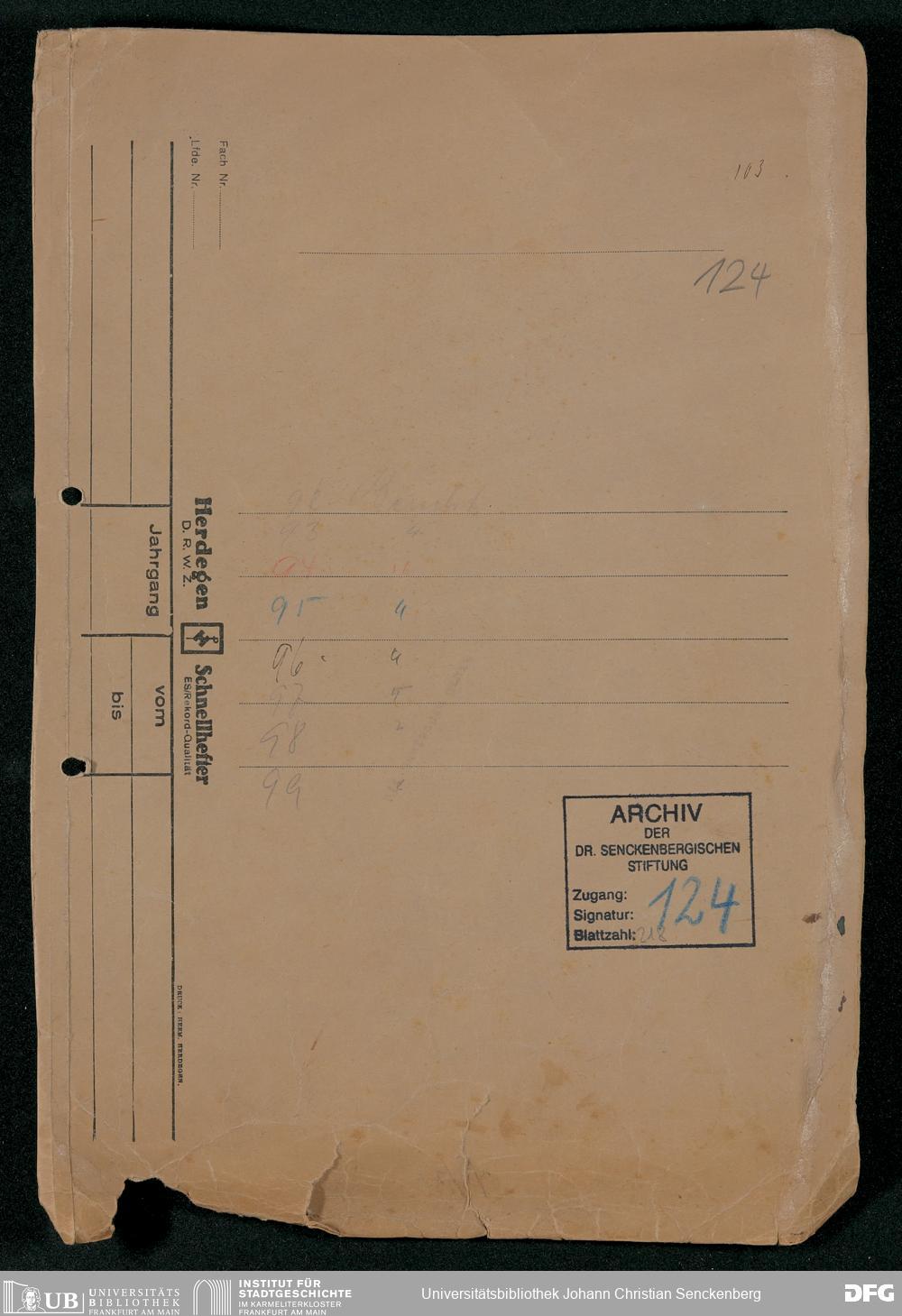 V48 Dr. Senckenbergische Stiftung, 124 - Jahresberichte Nr. 88, 91-96, 98 und 99