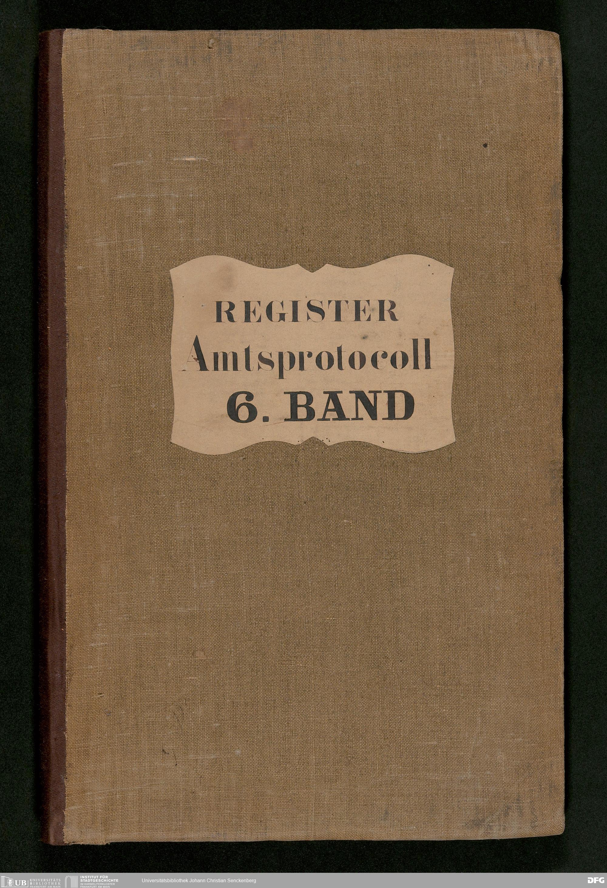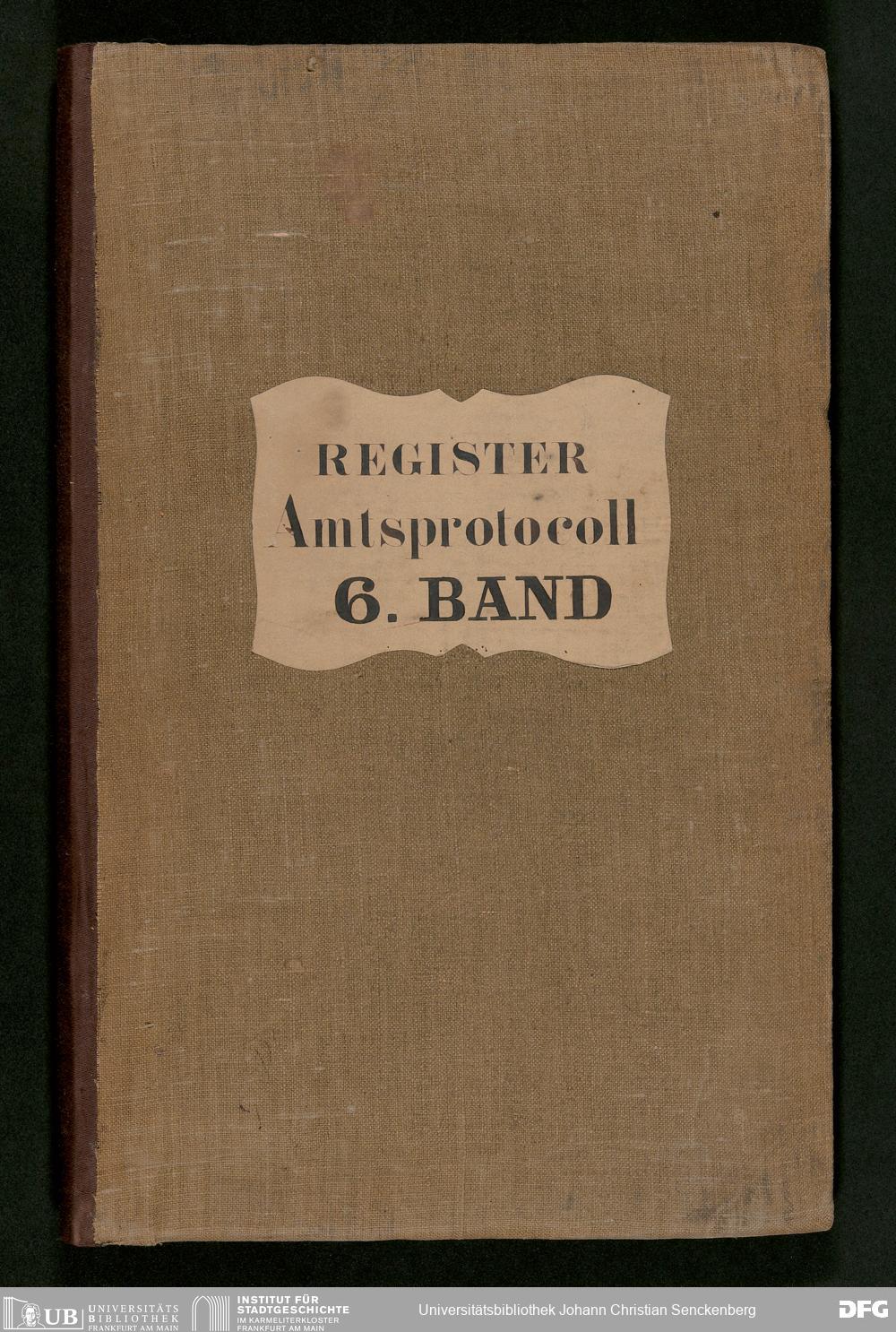 V48 Dr. Senckenbergische Stiftung, 180 - ... Register zum Amtsprotokoll der Dr. Senckenbergischen Stiftung, Teil 6
