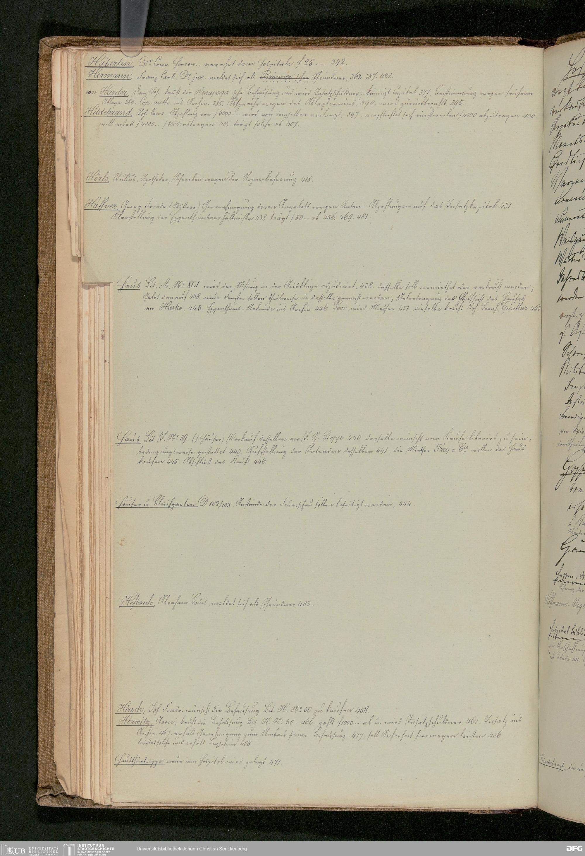 V48 Dr. Senckenbergische Stiftung, 180 - ... Register zum Amtsprotokoll der Dr. Senckenbergischen Stiftung, Teil 6
