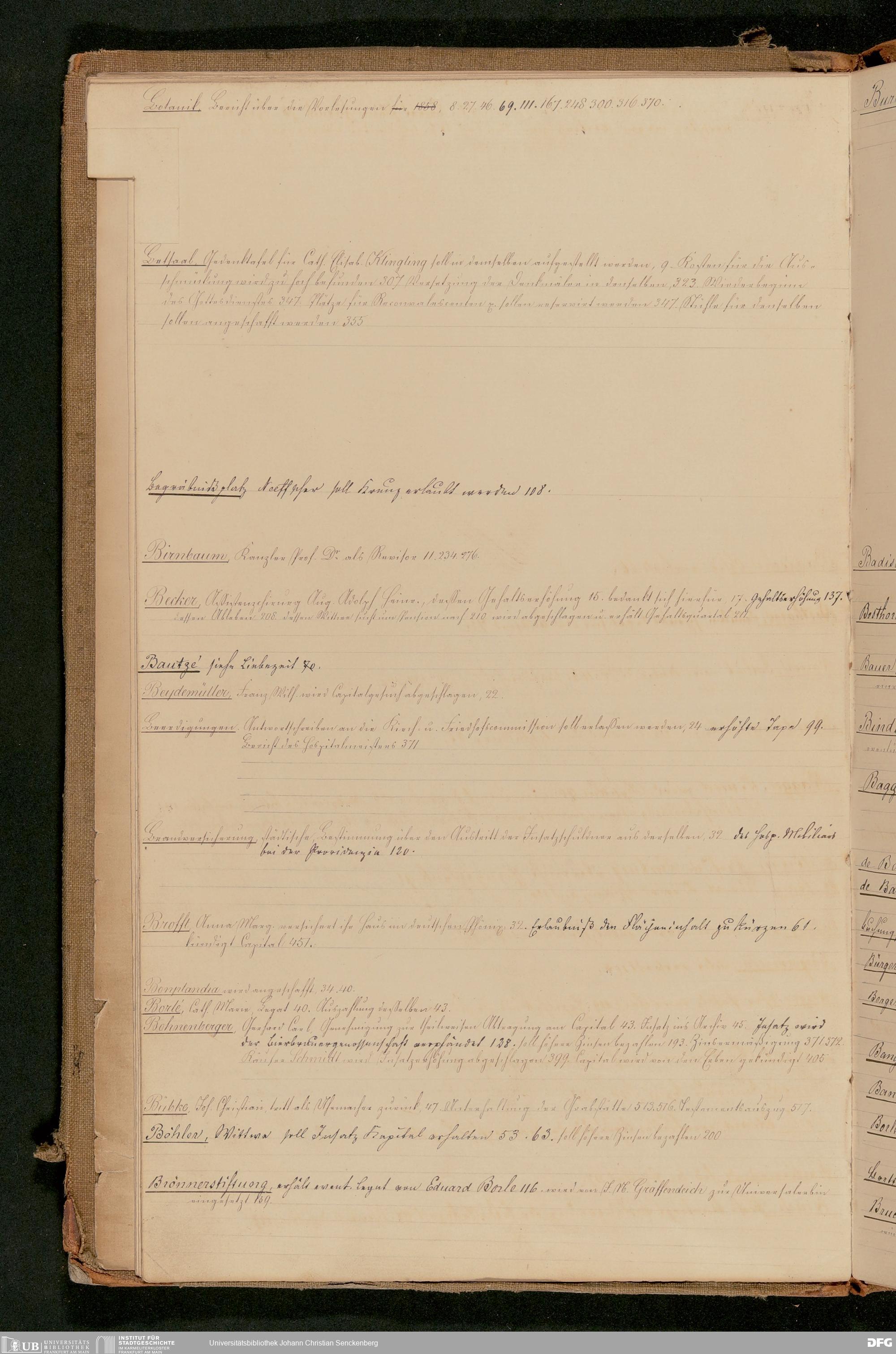 V48 Dr. Senckenbergische Stiftung, 181 - ... Register zum Amtsprotokoll der Dr. Senckenbergischen Stiftung, Teil 7
