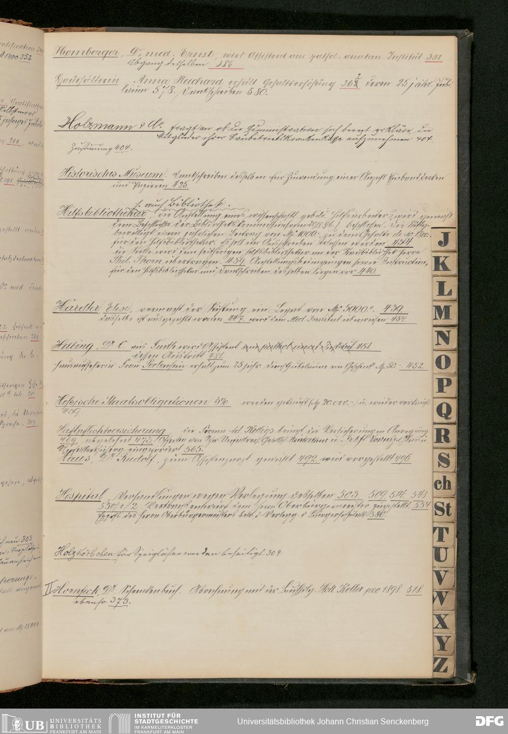 V48 Dr. Senckenbergische Stiftung, 182 - ... Register zum Amtsprotokoll der Dr. Senckenbergischen Stiftung, Teil 8