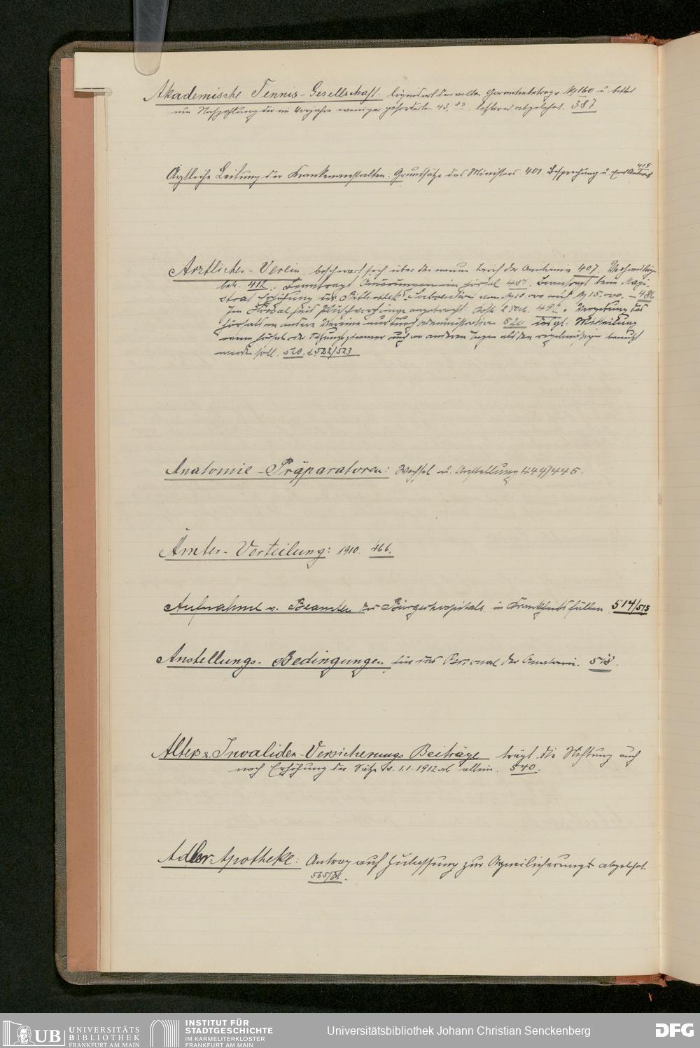 V48 Dr. Senckenbergische Stiftung, 183 - ... Register zum Amtsprotokoll der Dr. Senckenbergischen Stiftung, Teil 9