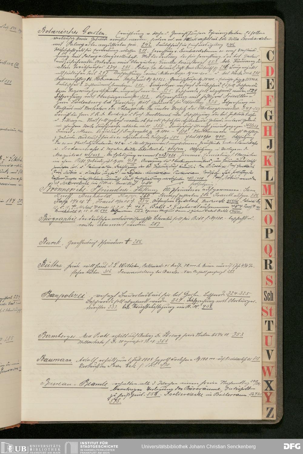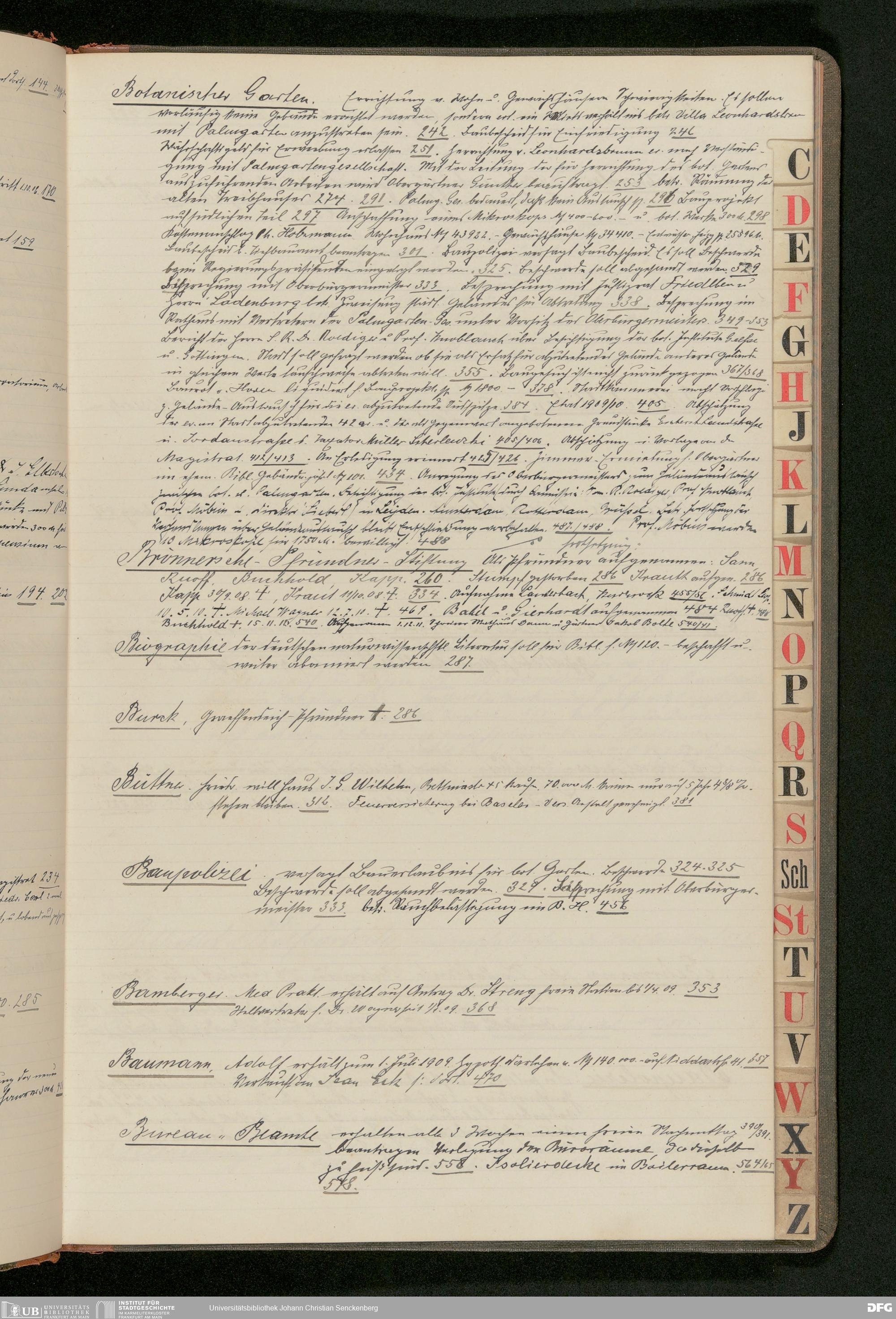 V48 Dr. Senckenbergische Stiftung, 183 - ... Register zum Amtsprotokoll der Dr. Senckenbergischen Stiftung, Teil 9