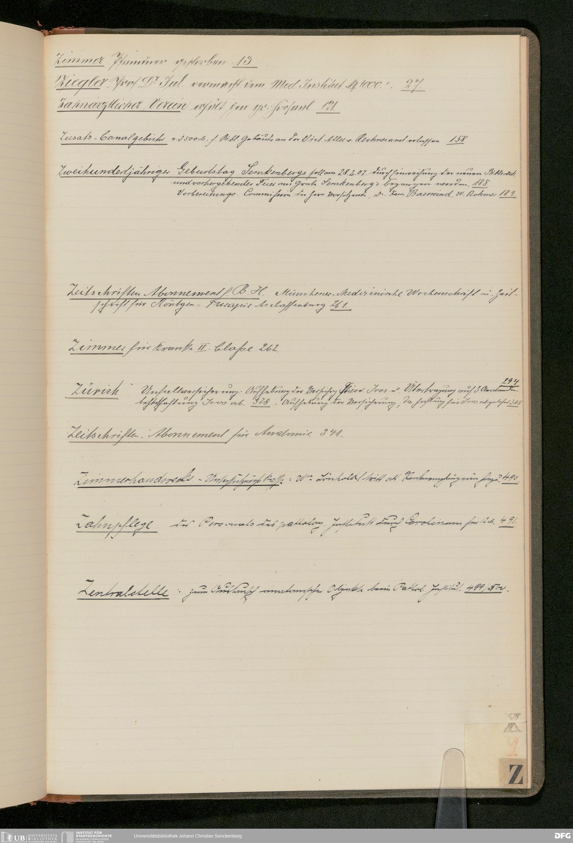 V48 Dr. Senckenbergische Stiftung, 183 - ... Register zum Amtsprotokoll der Dr. Senckenbergischen Stiftung, Teil 9